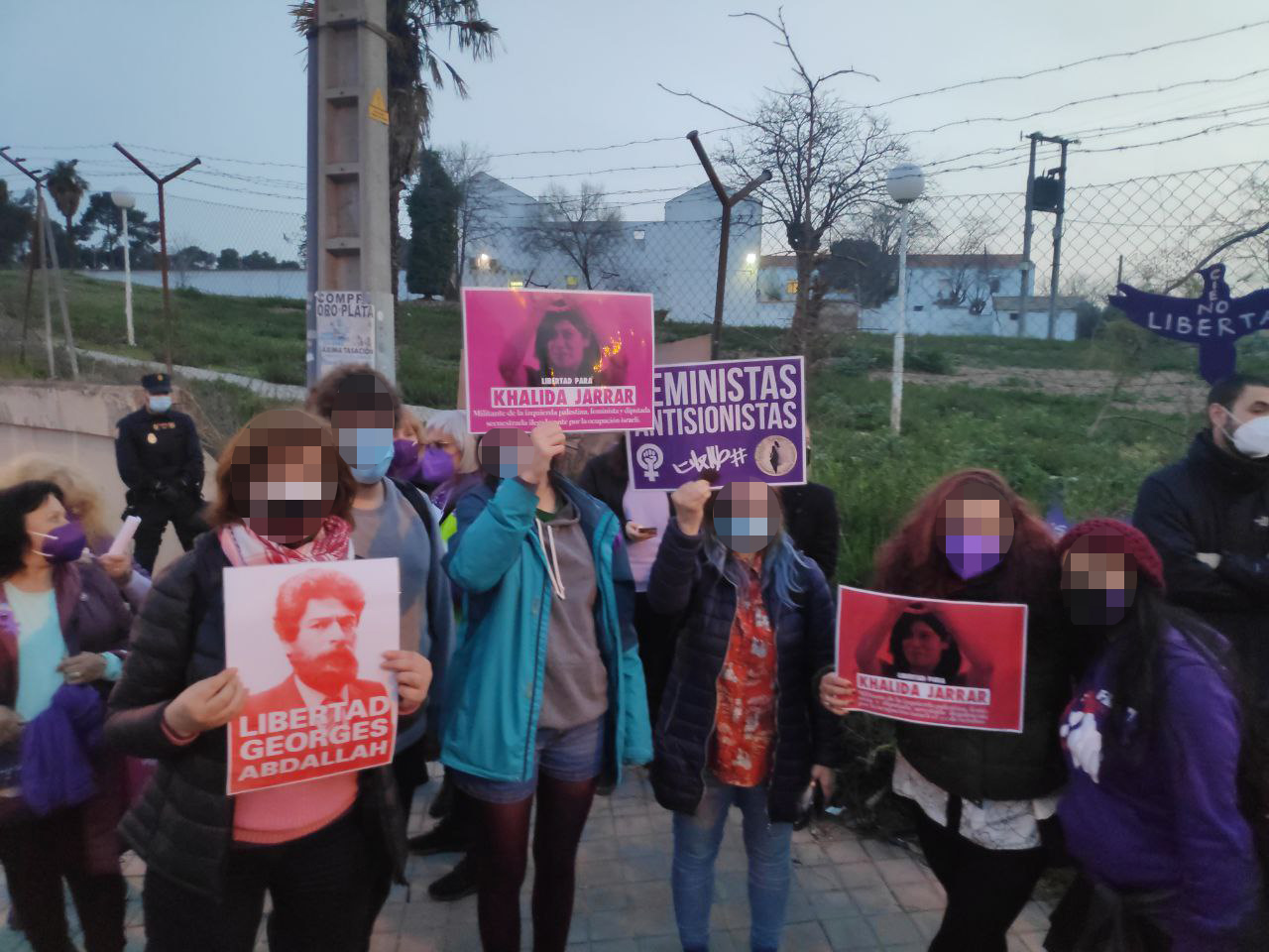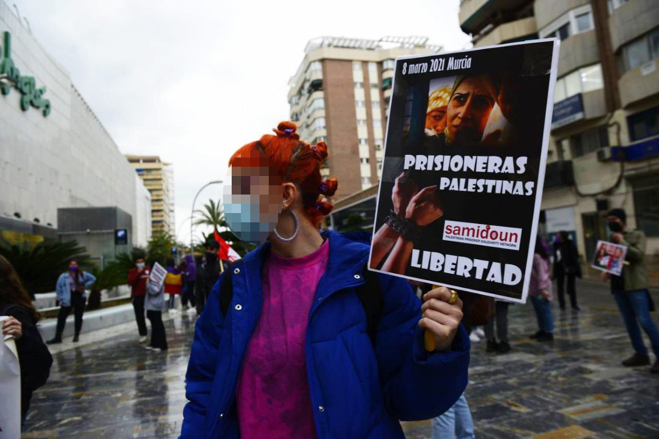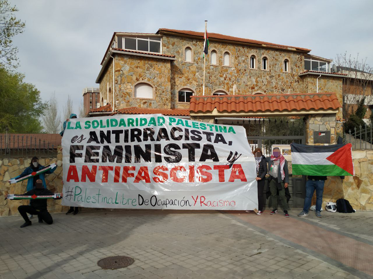 Marzo de 2021 fue un mes de una actividad muy intensa. Organizamos un conversatorio por zoom sobre “La lucha feminista palestina entre la primera Intifada y los Acuerdos de Oslo”, junto a Linda Graisa y Juani Rishmawy; fuimos a manifestarnos contra el Centro de Internamiento de Extranjeros (CIE, Aluche), otra cárcel ilegal para personas migrantes; se convocó el 8 de Marzo una concentración en Murcia en apoyo a las prisioneras políticas palestinas y el 30 de Marzo una por el Día de la Tierra; colgamos una pancarta en el corazón de Ciudad Universitaria en apoyo a los estudiantes palestinos presos por su activismo estudiantil y, una de las más importantes, dejamos claro a las organizaciones fascistas que pretenden apropiarse de la lucha palestina que “La solidaridad con Palestina es antirracista, feminista y antifascista.”