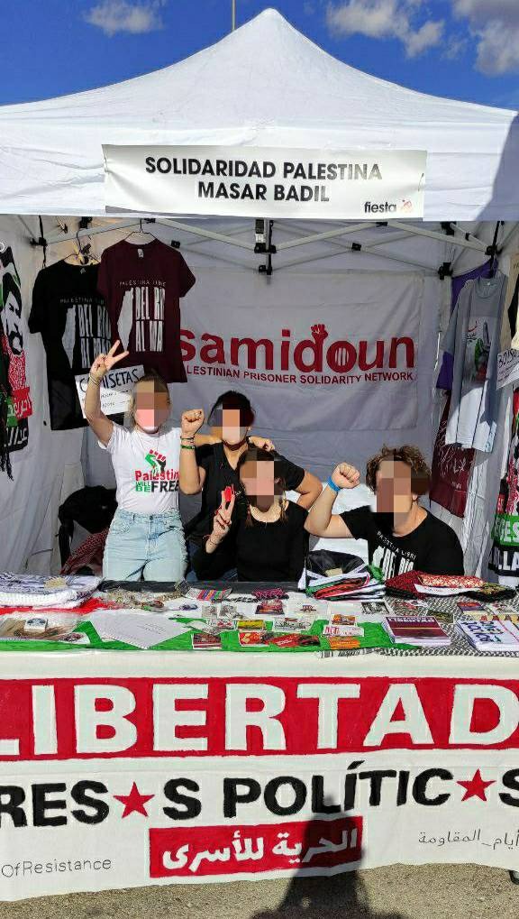 El colectivo de solidaridad con los presos políticos palestinos Samidoun España tuvo una destacada presencia en la Fiesta del Partido Comunista de España el pasado fin de semana del 30 de septiembre, 1 y 2 de octubre de 2022 en la ciudad de Rivas Vaciamadrid. Samidoun, como parte de la multitud de organizaciones comprometidas con la lucha de liberación palestina, tuvo un stand informativo y de venta de materiales en la fiesta.