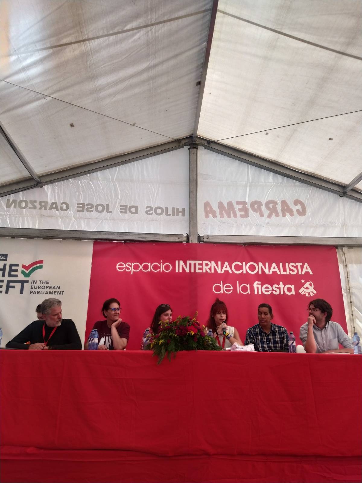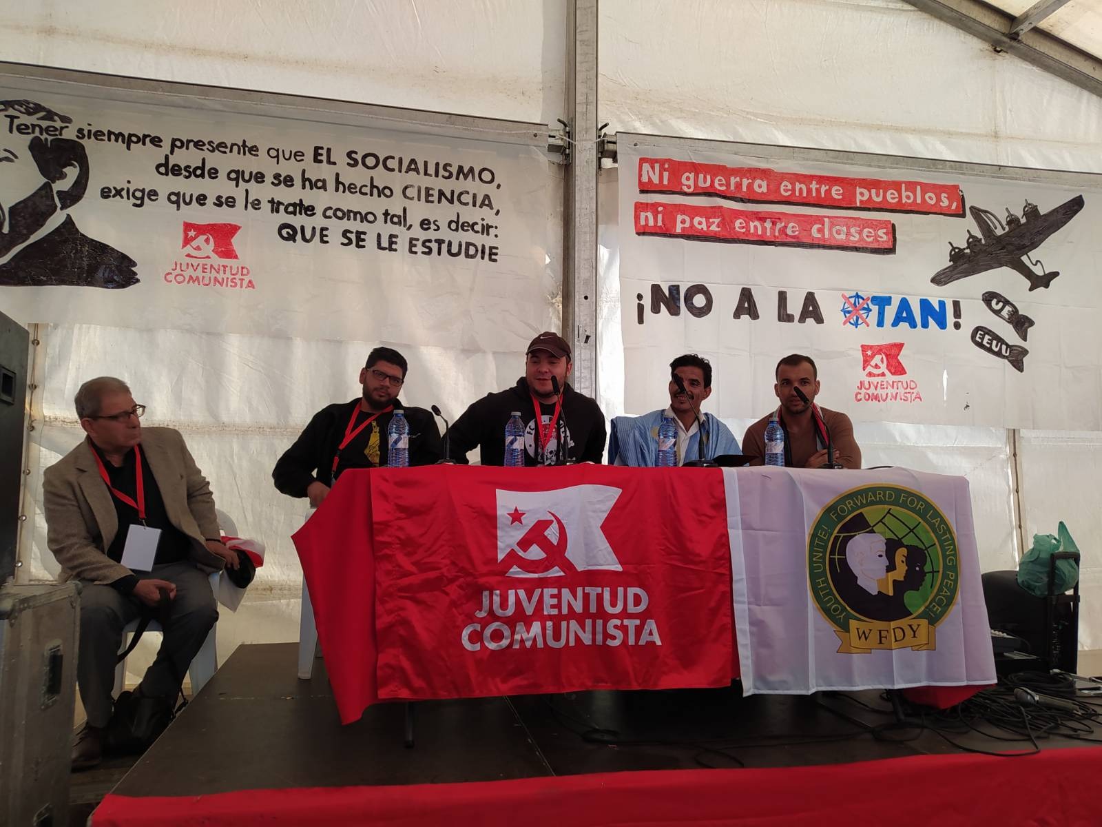 En cuanto a las diferentes ponencias que tuvieron lugar, la juventud palestina tuvo la oportunidad de hablar a través de la voz de Hamada en una ponencia llamada: “La lucha de la juventud antiimperialista, de la periferia al centro” quien habló junto al compañero saharaui Ali del UJSARIO. Esa misma tarde, Jaldía Abubakra, miembro de Samidoun, integrante de Unadikum y co-fundadora del Movimiento de Mujeres Palestinas Al Karama estuvo en el espacio internacionalista de la fiesta en una ponencia llamada “Alianzas anti-imperialistas y soberanía de Palestina” junto a Abdulah Arabi, Delegado del Frente Polisario para España, Roser Maestro, diputada de IU en el Congreso, Jon Rodríguez Forrest, responsable de Internacional de IU y Ghassan Dibeh, miembro del Partido Comunista Libanés.