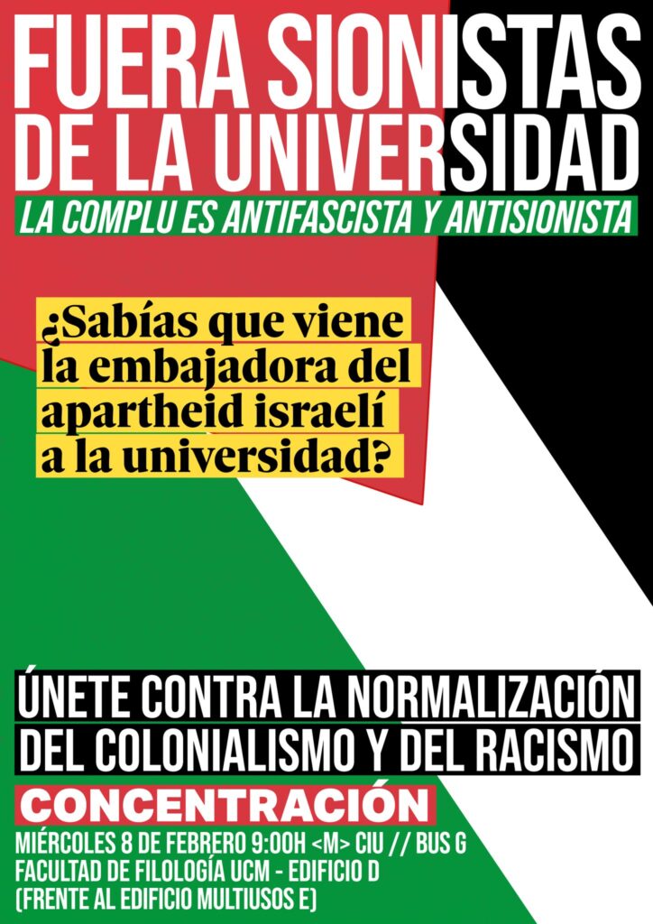8 de Febrero, Madrid: Fuera sionistas de la universidad: La Complu es antifascista y antisionista