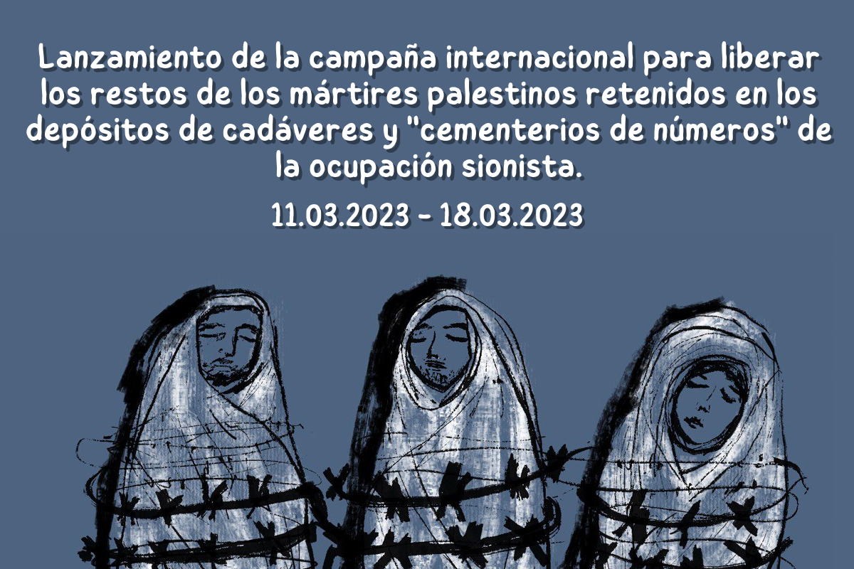 Anunciamos el lanzamiento de una campaña internacional abierta y en curso para liberar los restos de los mártires palestinos que siguen detenidos por la ocupación sionista. Del 11 de marzo al 18 de marzo de 2023 son días de acción y lucha para recuperar los restos de los mártires palestinos. Como el 18 de marzo también se celebra el Día Internacional de los Prisioneros, también destacamos que nuestros mártires en las morgues y los “cementerios de cifras” son de igual manera prisioneros del proyecto sionista.