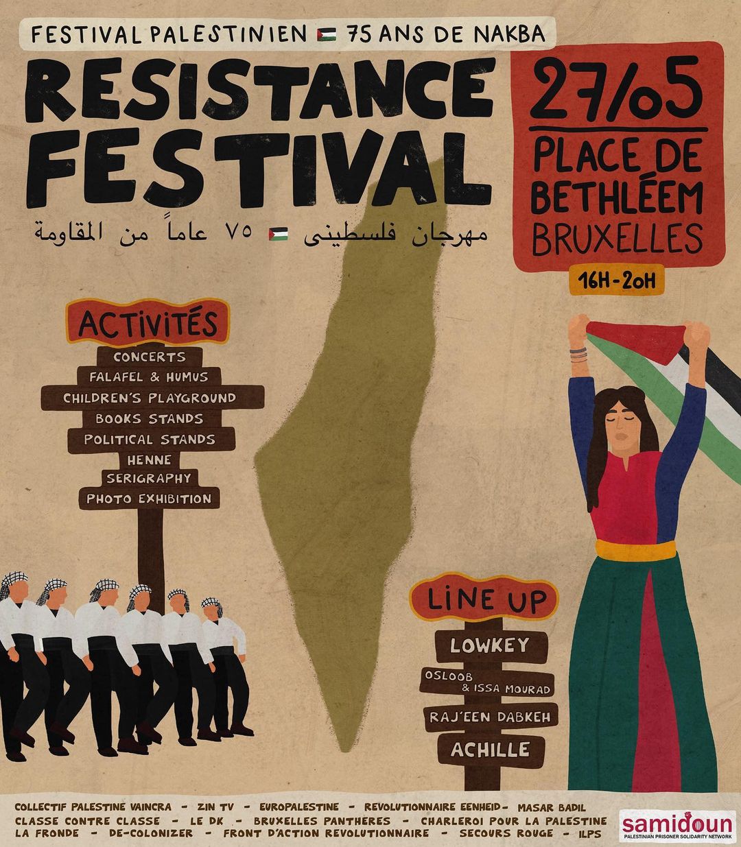 ¡El Festival de la Resistencia tiene como objetivo celebrar la resistencia palestina en todas sus formas y hacer hincapié en que la solidaridad con Palestina, una causa antirracista y anticolonialista, está más viva que nunca en Bruselas y en. todo el mundo!