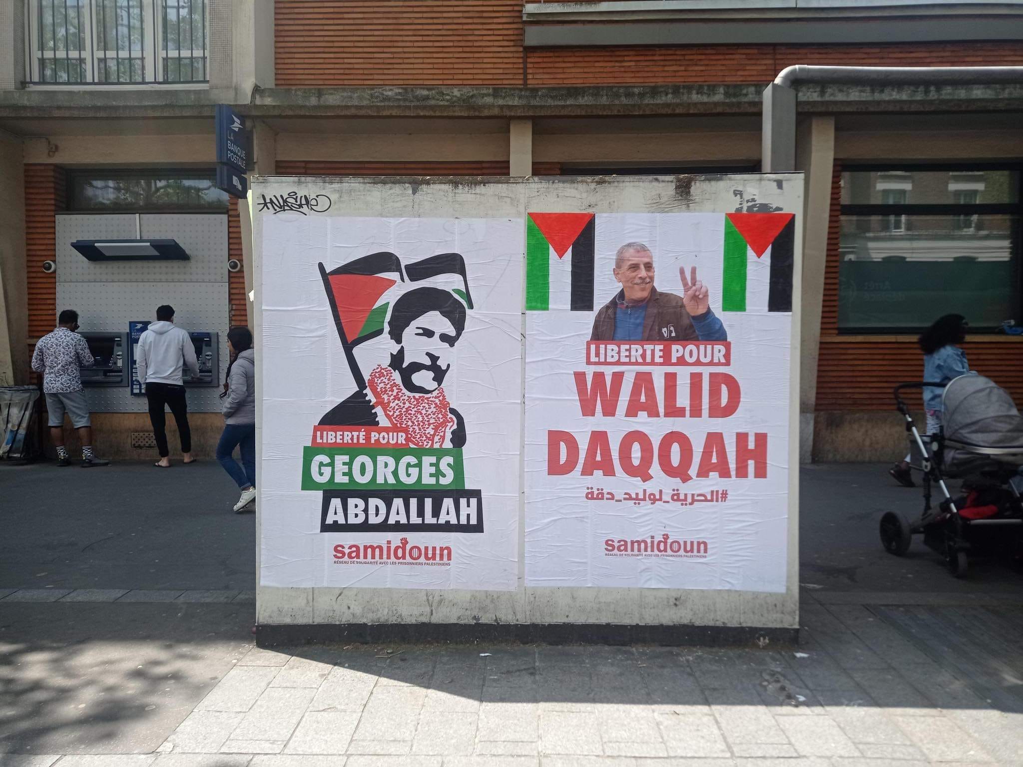 Carteles de Walid Daqqah y George Abdallah en la calle