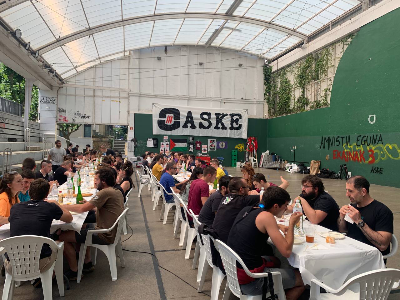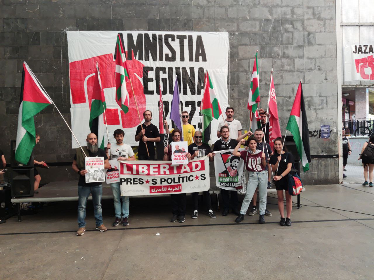 El sábado 3 de junio de 2023 la Red Internacional de Solidaridad con los Presos Políticos Palestinos Samidoun en el Estado Español fue invitada a participar en el Amnistia Eguna 2023 (Día de la Amnistía) en Euskal Herria organizadas por la organización independentista y socialista contra la represión y a favor de la amnistía de lxs presxs políticxs vascxs Aske, que opera como parte de la coordinadora Jardun. Aske nació como la herramienta para combatir la persecución que sufren las organizaciones de trabajadores, políticas y sociales vascas. En este marco, la lucha por la amnistía se entiende no como la mera consecución de la libertad de lxs presxs políticxs, sino como un paso indispensable para crear condiciones políticas que logren la independencia y el socialismo en el País Vasco.
