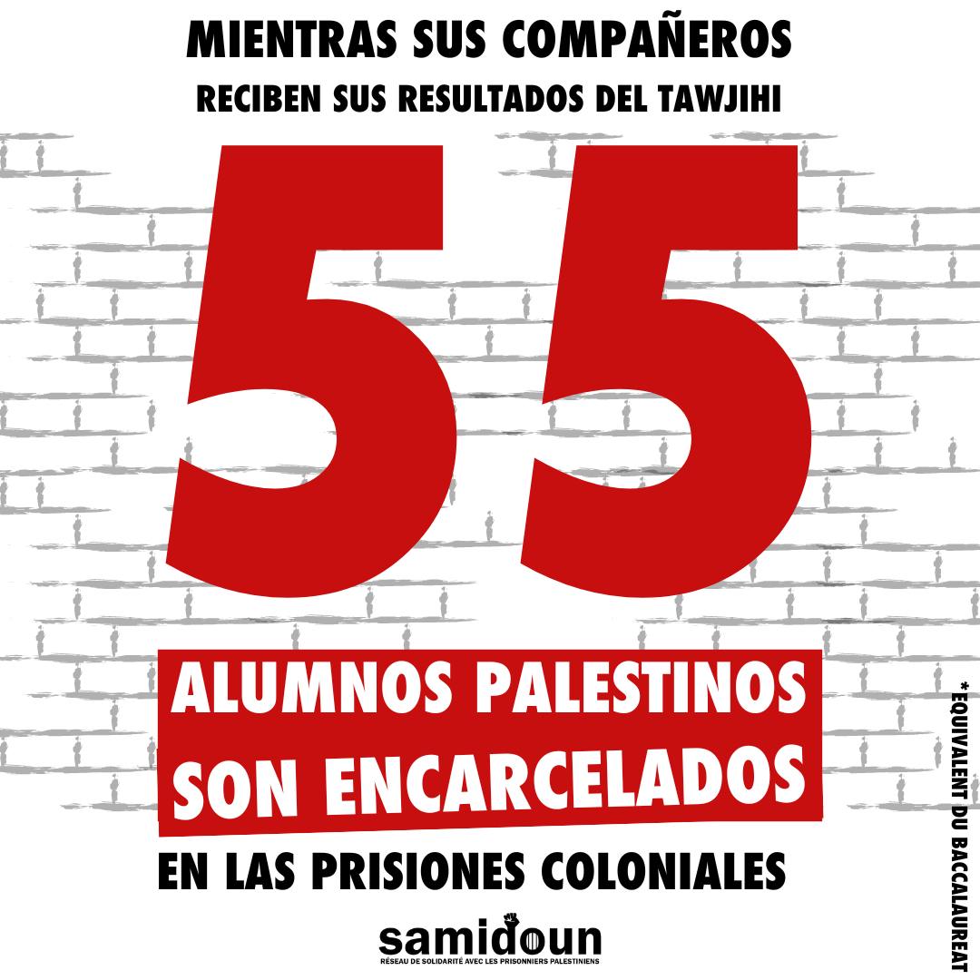 En prisiones coloniales, 55 estudiantes palestinos de secundaria están detenidos y, por tanto, privados de la oportunidad de graduarse.
