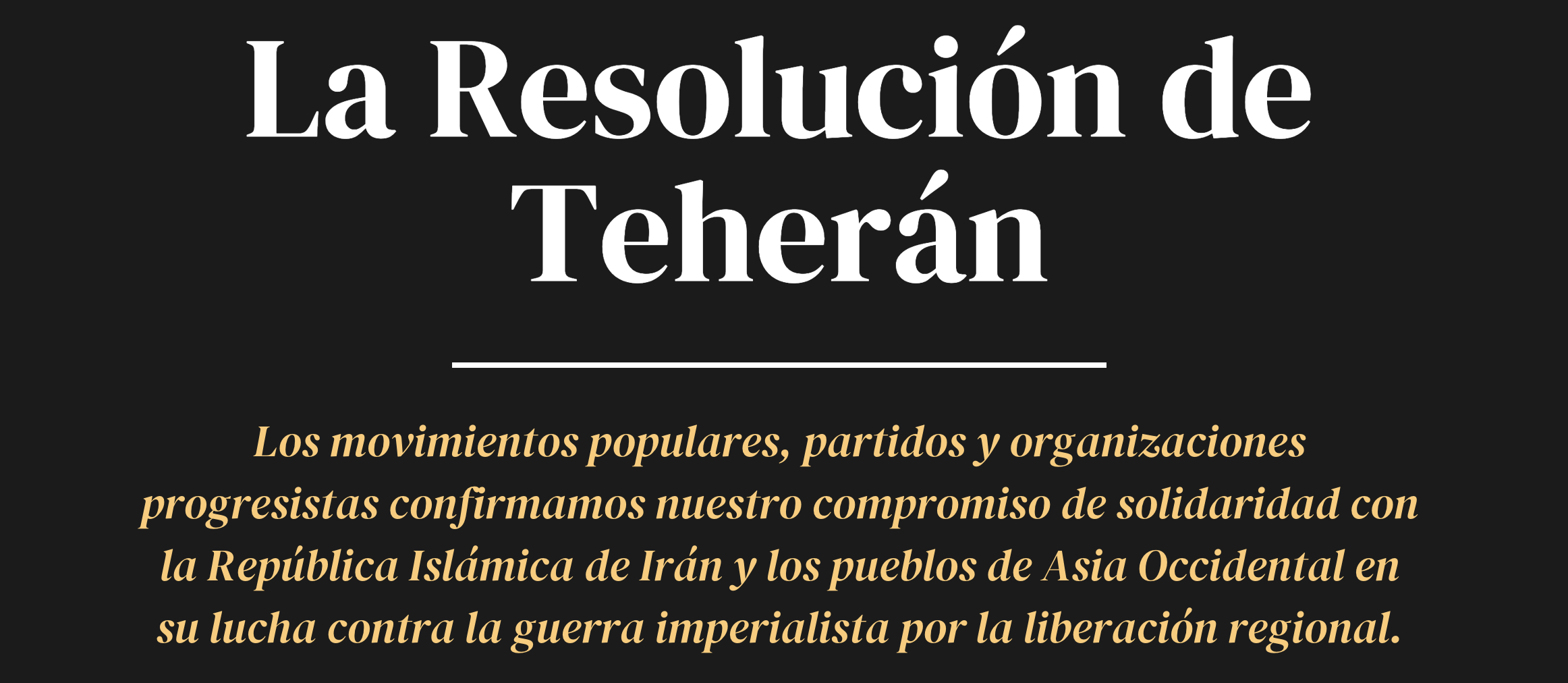 Los movimientos populares, partidos y organizaciones progresistas confirmamos nuestro compromiso de solidaridad con la República Islámica de Irán y los pueblos de Asia Occidental en su lucha contra la guerra imperialista por la liberación regional. La resolución fue lanzada por Haqooq e-Khalq, y somos firmantes junto a organizaciones populares de todo el mundo.