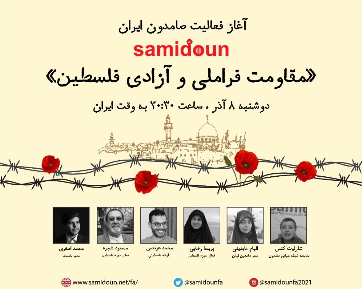 نشست “مقاومت فراملی و آزادی فلسطین” با حضور فعالين مدني و كارشناسان از فلسطين، ایران، کانادا و انگلستان دوشنبه ۸ آذر از ساعت ۲۰:۳۰ به وقت تهران به صورت آنلاین آغاز خواهد شد.