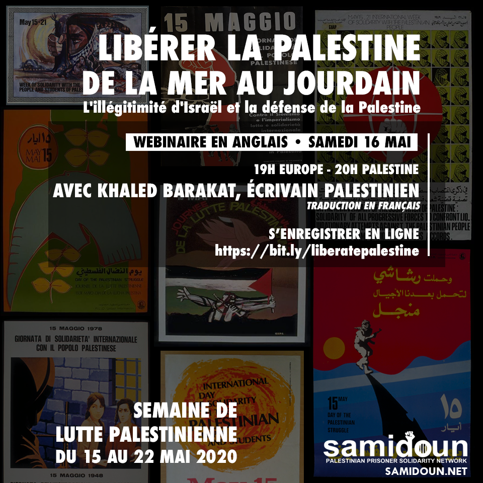 Rejoignez Samidoun Palestinian Prisoner Solidarity Network pour un webinaire avec l’écrivain palestinien Khaled Barakat sur l’illégitimité d’Israël et la défense de la Palestine dans le cadre de la Semaine de lutte palestinienne. Cette conférence sera également traduite en français !