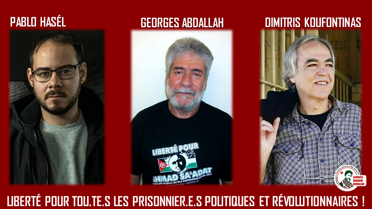 LIBERTE POUR DIMITRIS KOUFONTINAS, PABLO HASEL, GEORGES ABDALLAH ET TOUS LES PRISONNIERS POLITIQUES ET REVOLUTIONNAIRES !