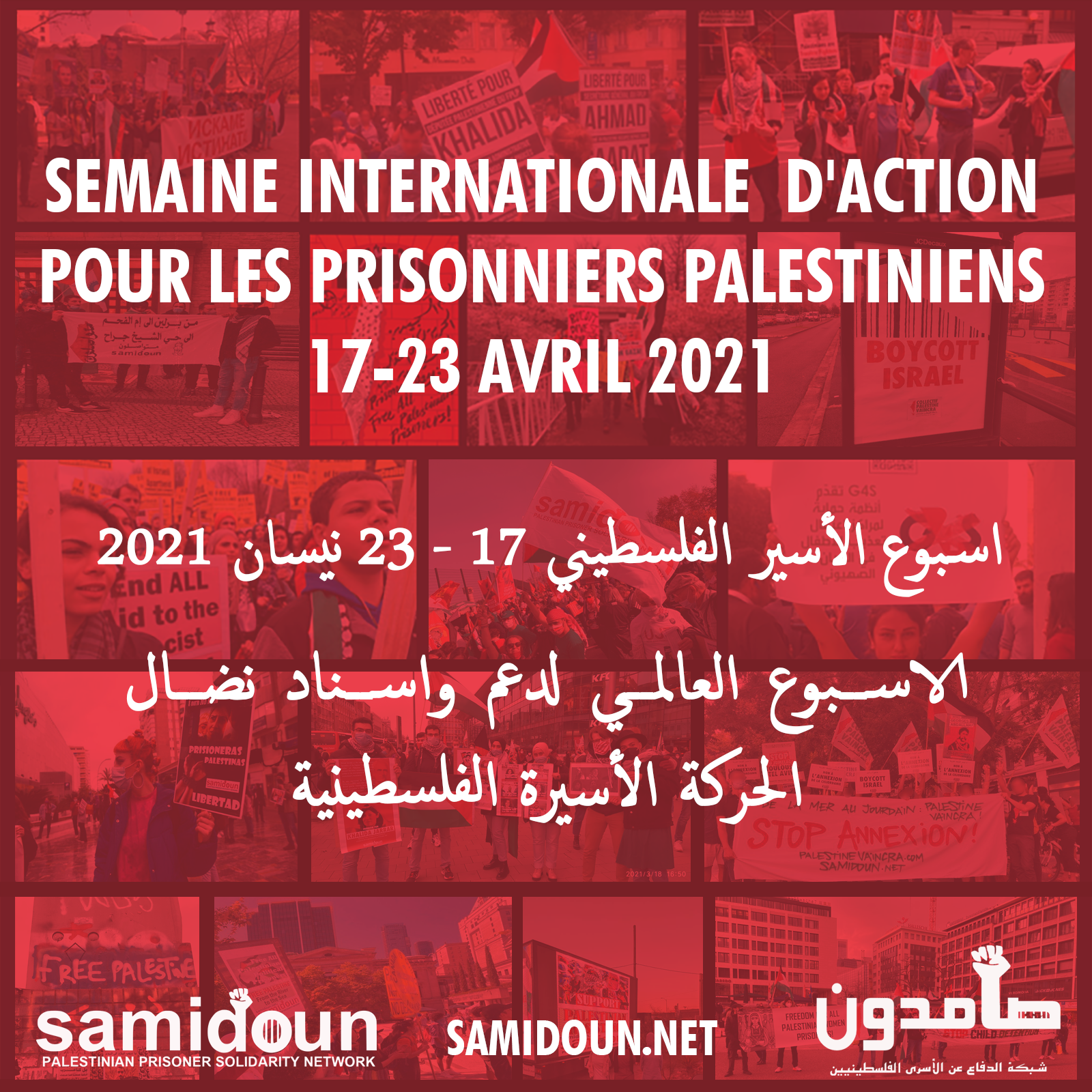Avec nos camarades du réseau de solidarité avec les prisonniers palestiniens Samidoun, à l’intérieur et à l’extérieur de la Palestine occupée, nous portons le message du mouvement des prisonniers à l’intérieur des prisons de l’occupation israélienne, et nous vous appelons à participer et à vous joindre à nous pour organiser une semaine d’activités, de campagnes, d’actions et de mouvements populaires et de solidarité en soutien aux prisonniers palestiniens et à leur juste lutte pour la liberté et la libération. Nous vous appelons à dénoncer les crimes sionistes quotidiens auxquels ils sont constamment soumis, notamment les politiques de répression, d’isolement, de punition collective et de privation pratiquées par l’administration pénitentiaire à leur encontre.