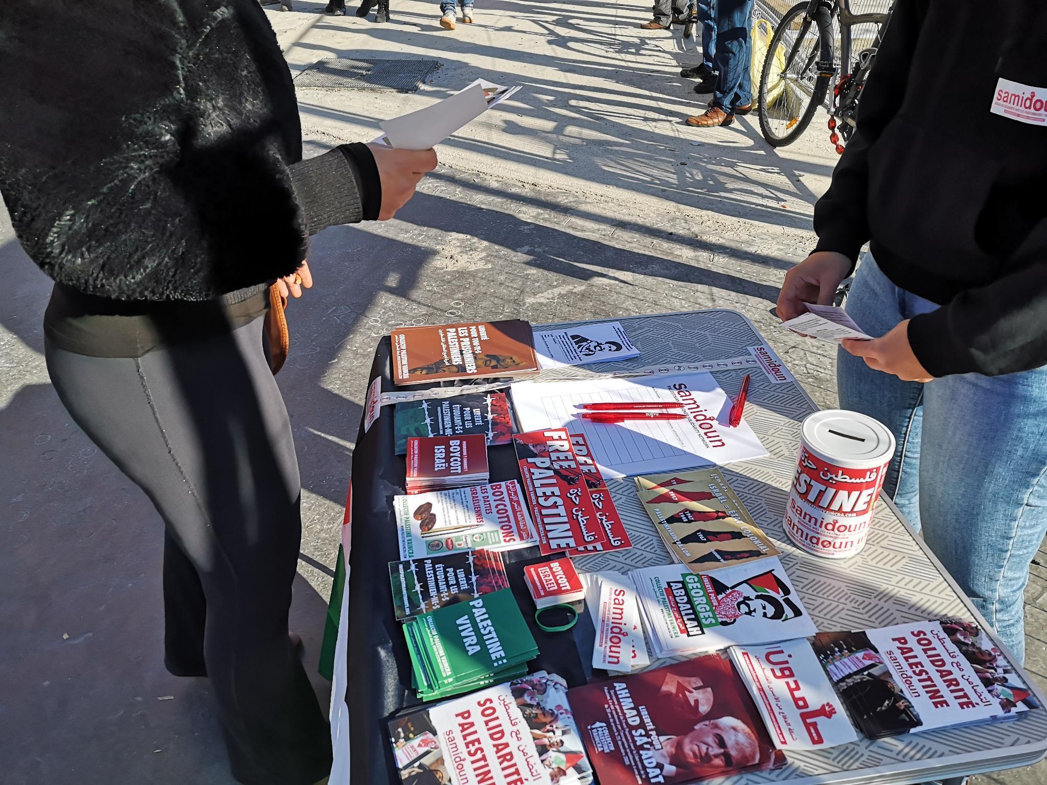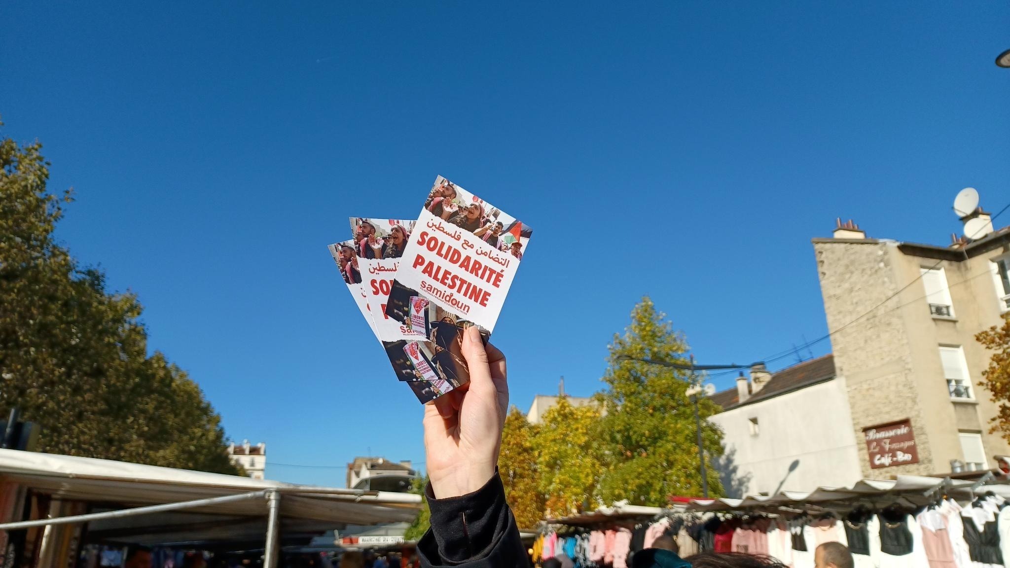 Le samedi 16 octobre, il y avait du soleil sur la ville et dans les cœurs à Aubervilliers, à l’occasion du premier stand de Samidoun Région Parisienne ! La toute nouvelle section a fait connaissance avec les habitants lors du marché du centre-ville. Pendant plus de deux heures, nous avons distribué des flyers pour la défense des prisonniers palestiniens, la libération de Georges Ibrahim Abdallah et appelé au boycott d’Israël. La générosité et les soutiens rencontrés lors de ce premier stand Palestine nous encouragent à poursuivre notre combat !