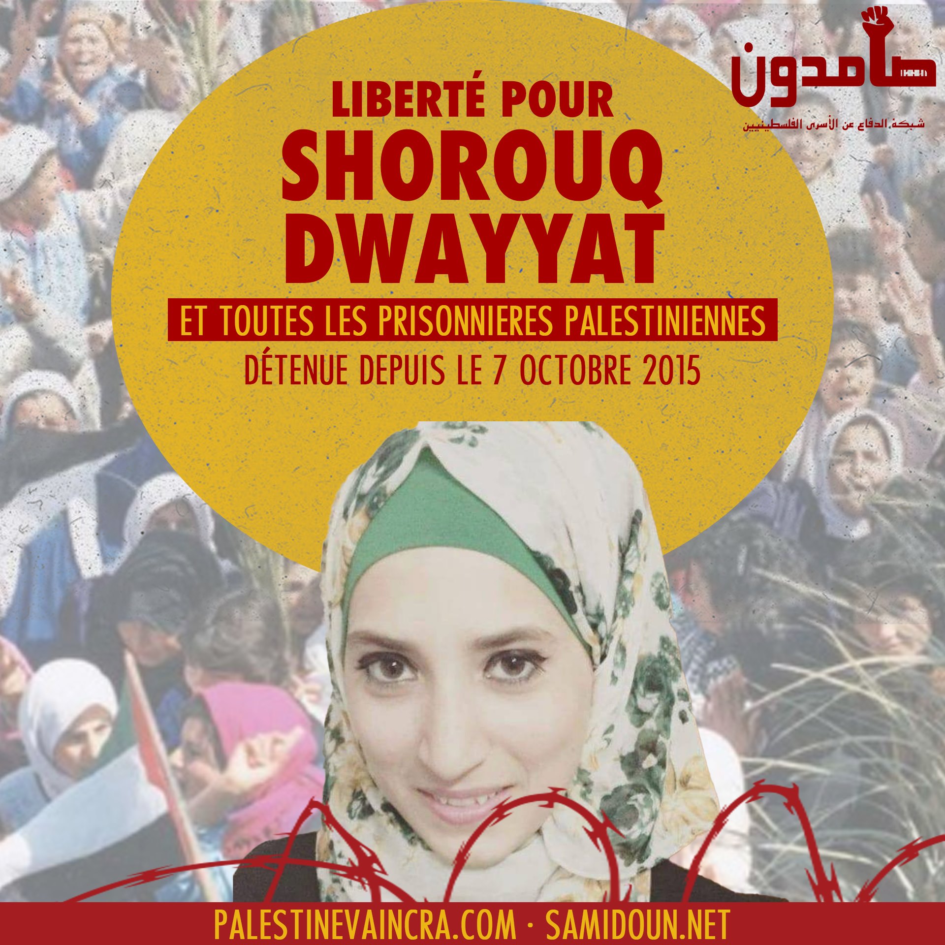 Le Comité international de la Croix-Rouge (CICR) a la responsabilité d’agir pour protéger ces prisonnières palestiniennes – et tous les Palestiniens emprisonnés – des actions de représailles et des punitions collectives imposées par l’occupation israélienne. Nous demandons au CICR d’agir pour protéger les femmes palestiniennes contre les agressions, d’obtenir des visites familiales pour les femmes palestiniennes emprisonnées, d’obtenir la mise en œuvre des appels téléphoniques aux membres de la famille pour les femmes palestiniennes emprisonnées et d’obtenir la fin de l’isolement de Shorouq Dwayyat, Marah Bakir et Mona Qaadan. Cliquez ici pour écrire une lettre au Comité international de la Croix-Rouge afin de lui demander d’agir pour défendre les femmes palestiniennes détenues.