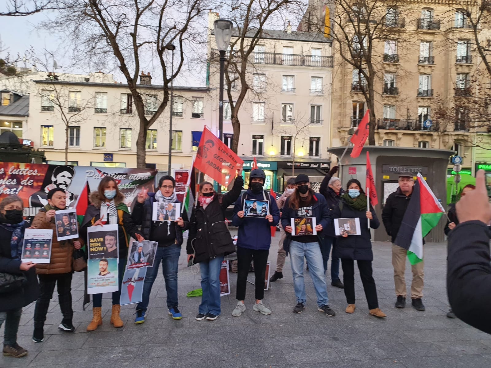 La veille, vendredi 14 janvier, la Campagne unitaire pour la libération de Georges Abdallah a organisé un rassemblement dans le quartier de Ménilmontant à Paris dans le cadre de la Semaine internationale d’actions. Plusieurs dizaines de personnes se sont rassemblées pour réaffirmer leur solidarité avec Ahmad Sa’adat, Georges Abdallah et l’ensemble des 4600 prisonniers palestiniens en scandant des slogans de soutien à la résistance palestinienne tout en déployant plusieurs banderoles et affiches. La solidarité avec la révolte dans le Naqab occupé et en soutien au prisonnier malade Nasser Abu Hamid était également exprimée !