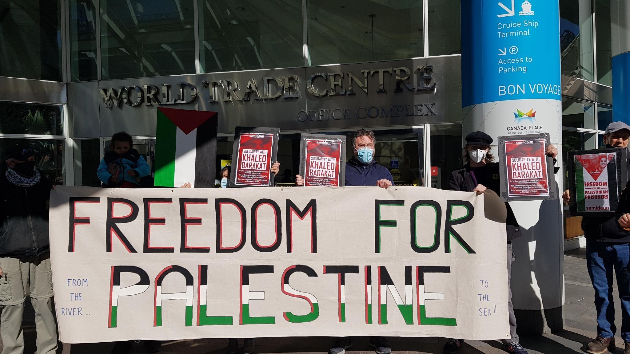Le 9 mars, à Vancouver, au Canada, où vit Barakat, des activistes en compagnie de Samidoun Vancouver, de la Canada Palestine Association et de BDS Vancouver – Coast Salish, se sont rendus aux consulats d’Allemagne et de France afin de remettre des lettres de protestation contre la répression qui vise toute organisation en faveur des droits palestiniens. La lettre remise au consulat d’Allemagne demandait aux autorités berlinoises de l’immigration de retirer leur interdiction politique et leur ordonnance d’expulsion à l’encontre de Barakat. La lettre demandait également au gouvernement allemand de modifier sa position vis-à-vis de la Palestine et de mettre un terme à son soutien à l’occupation israélienne.
