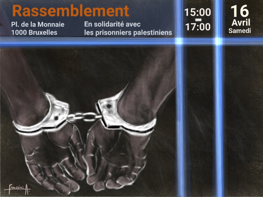 Dans le cadre de la journée internationale pour les prisonniers palestiniens, nous vous invitons à un rassemblement de solidarité avec les milliers de Palestiniens détenus arbitrairement depuis des décennies.