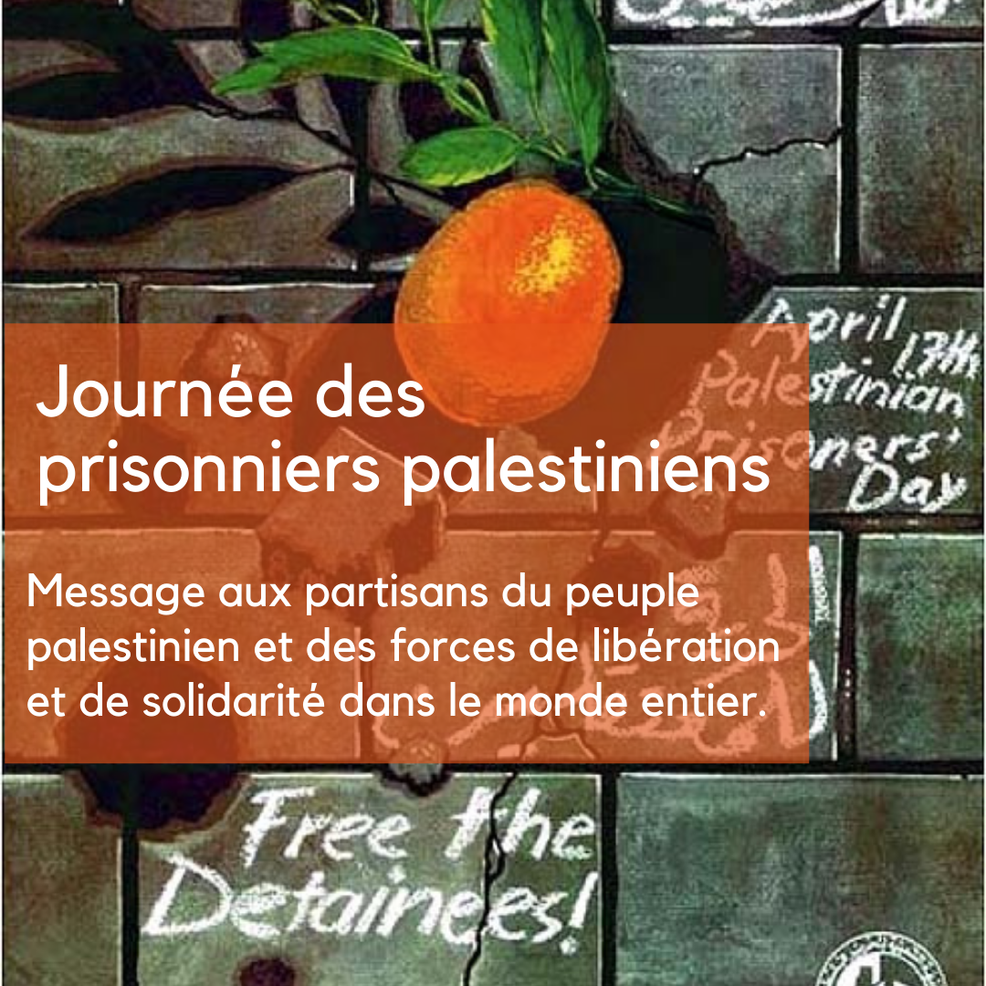 En cette Journée des prisonniers palestiniens 2022, nous saluons les luttes des forces de libération révolutionnaires et le mouvement de solidarité avec le peuple palestinien partout dans le monde, ainsi que tous les partisans de la résistance palestinienne jusqu’à la libération et le retour. Nous nous adressons aujourd’hui à vous par ce message à nos camarades du réseau de solidarité avec les prisonniers palestiniens Samidoun, dans l’espoir que notre voix atteigne tous les peuples libres du monde.