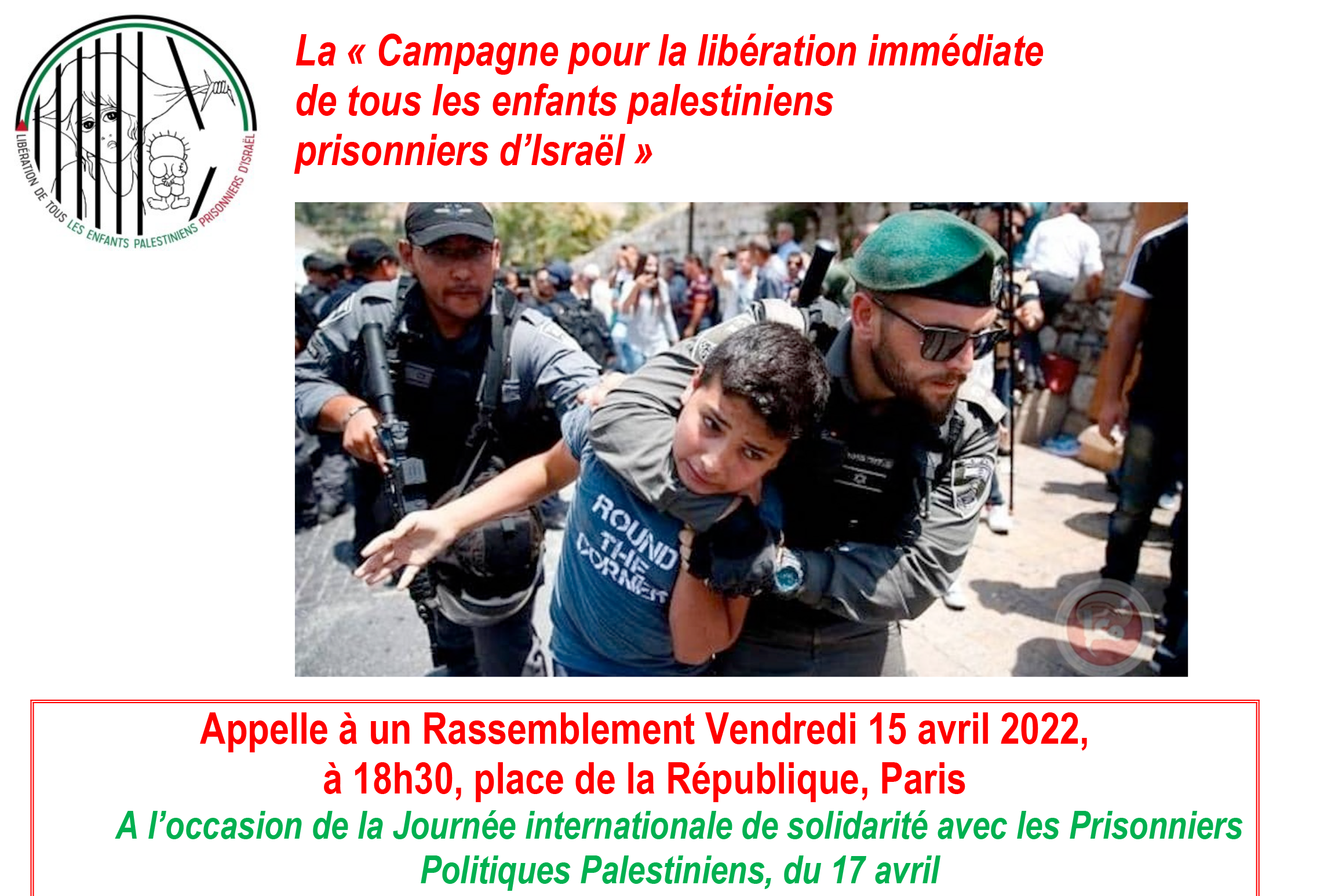 A l’appel de la Campagne pour la libération des enfants palestiniens emprisonnés par Israël, rassemblement pour la libération des prisonniers politiques palestiniens. Samidoun Région Parisienne sera présent à cette initiative, l’appel :