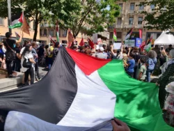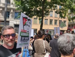 Comprenant que la criminalisation de la solidarité avec la Palestine est un enjeu international, plusieurs pancartes et prises de parole dénonçaient la répression anti-palestinienne. Dans ce sens, plusieurs personnes se sont félicitées de la récente victoire d’Olivia Zémor, présidente d’Europalestine, suite à sa relaxe en appel dans son procès qui l’opposait à la firme israélienne TEVA. En arabe et en français, le Collectif Palestine Vaincra a adressé un message vidéo de soutien à Samidoun Deutschland et à l’ensemble des organisations qui font face à l’interdiction des initiatives pour la Nakba à Berlin.