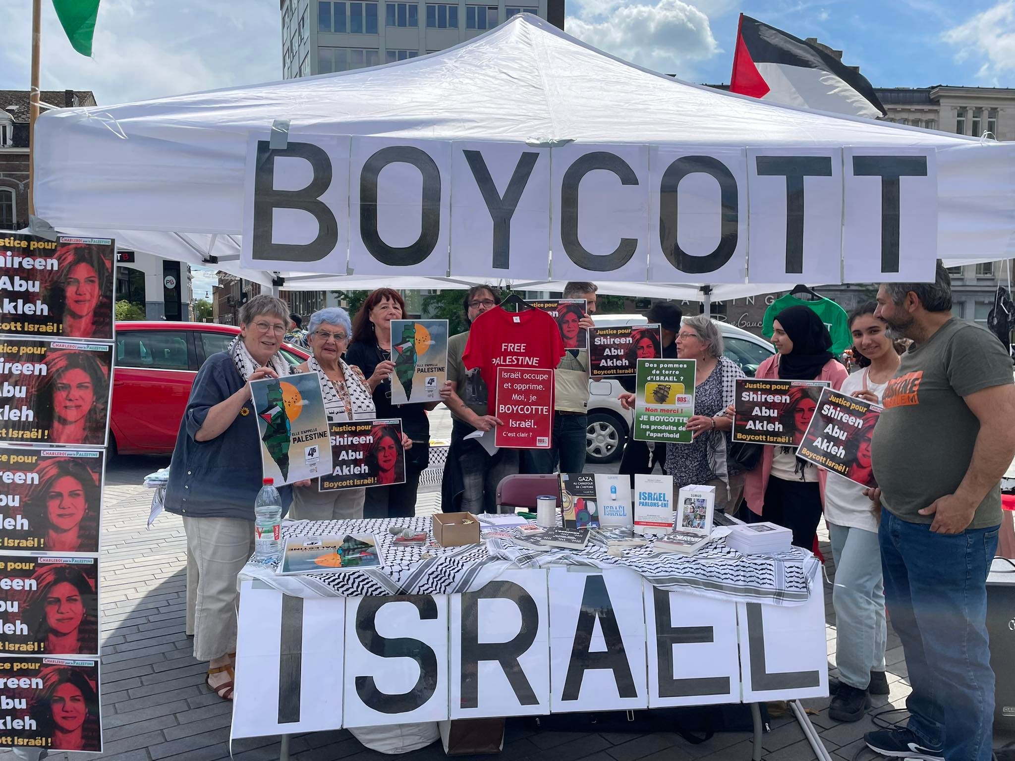 Ce samedi, des membres de la Plate-forme Charleroi-Palestine (organisation membre du réseau Samidoun) tenaient un stand “Justice pour Shireen – boycott Israël” dans le centre de la ville de Charleroi en Belgique.