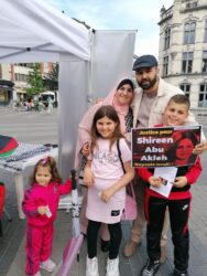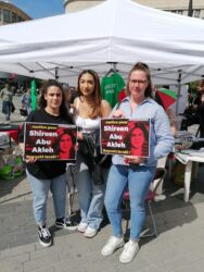 Alors Israël a annoncé qu’il n’allait pas lancer d’enquête pénale sur l’exécution extrajudiciaire de la journaliste Shireen Abu Akleh, de nombreuses personnes se sont fait prendre en photo pour réclamer “Justice pour Shireen”. Un flyer était distribué aux passants.