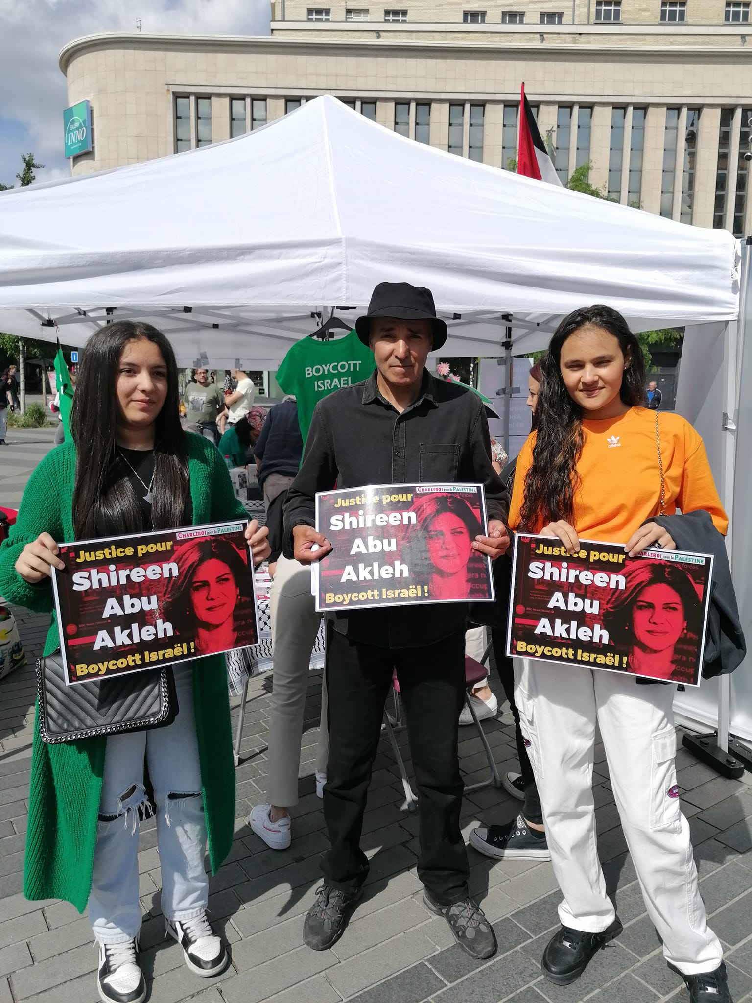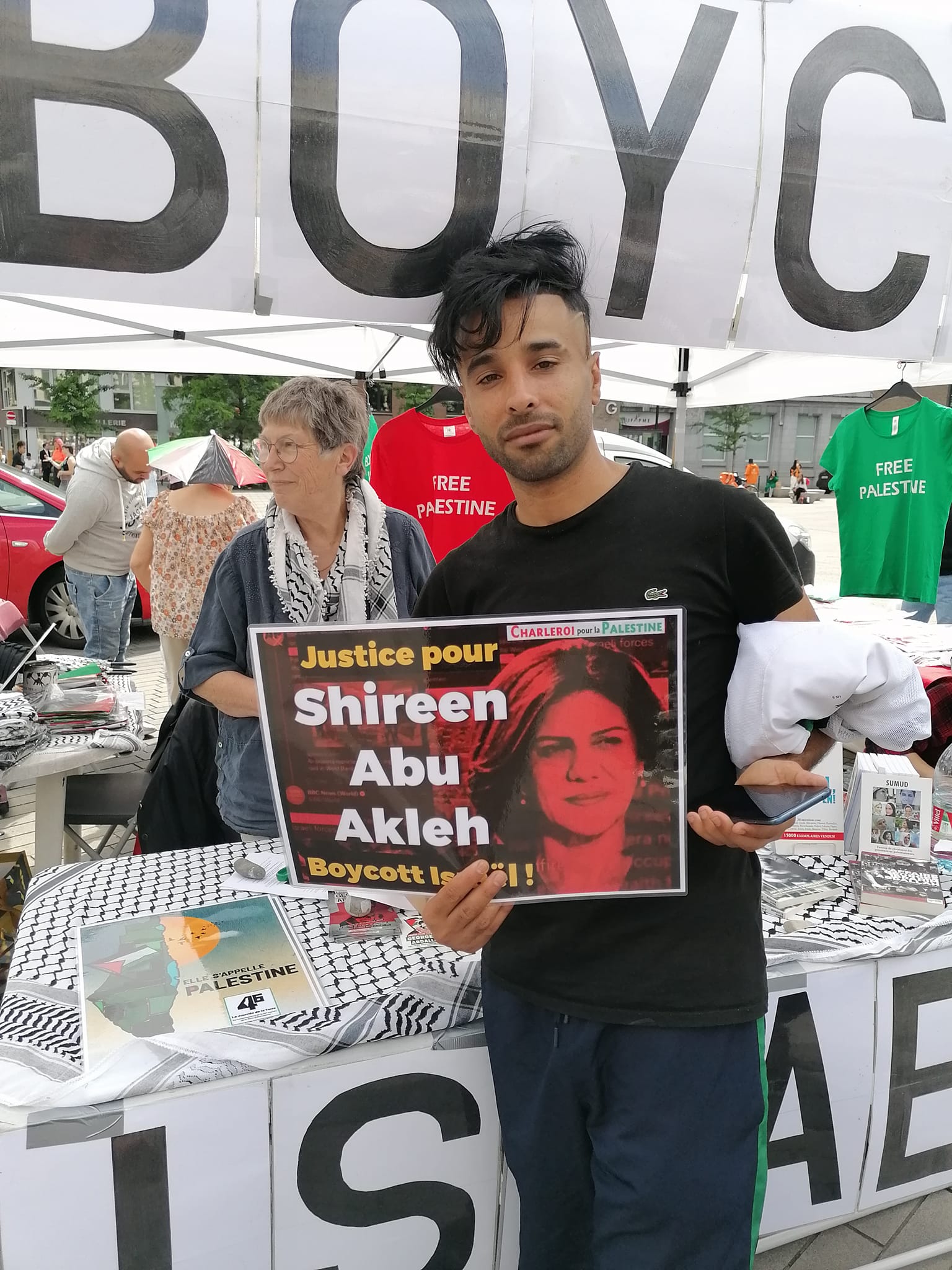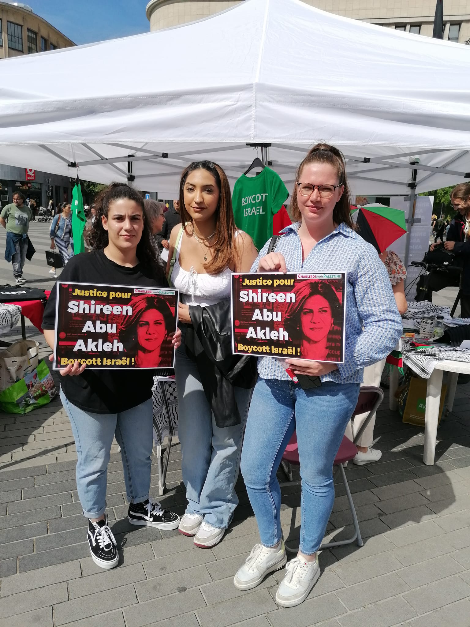 Ce samedi, des membres de la Plate-forme Charleroi-Palestine (organisation membre du réseau Samidoun) tenaient un stand “Justice pour Shireen – boycott Israël” dans le centre de la ville de Charleroi en Belgique.