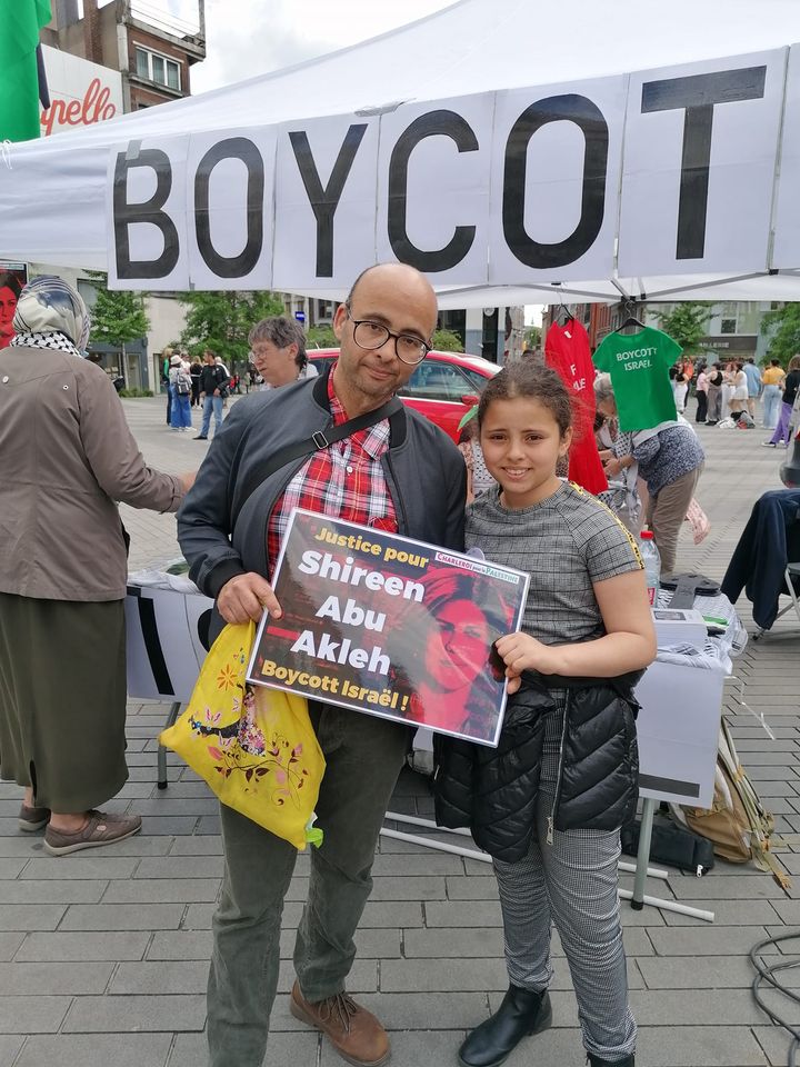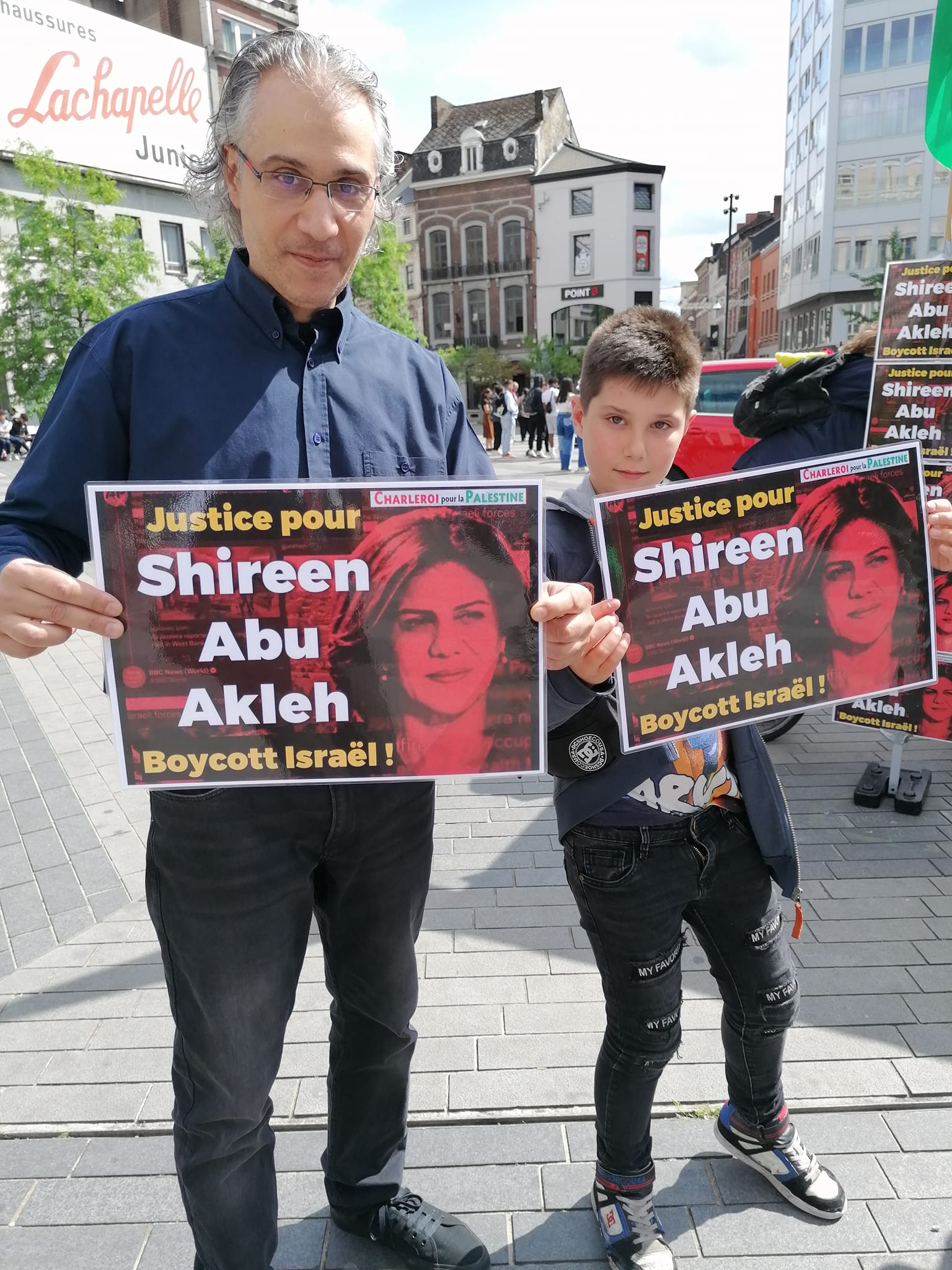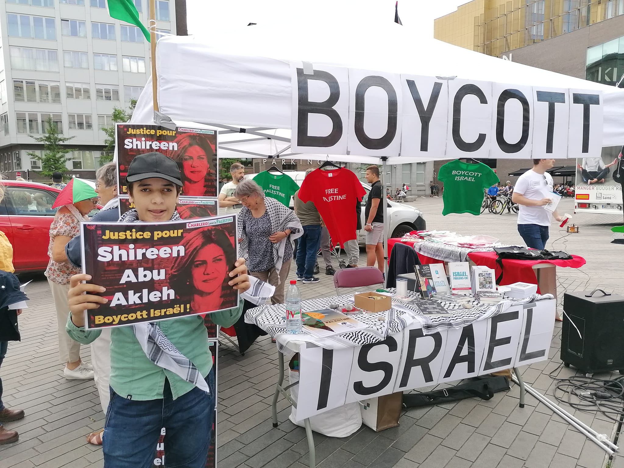 Ce samedi, des membres de la Plate-forme Charleroi-Palestine (organisation membre du réseau Samidoun) tenaient un stand “Justice pour Shireen – boycott Israël” dans le centre de la ville de Charleroi en Belgique.