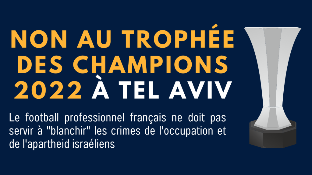 Nous nous opposons fermement à la tenue de cette rencontre en Israël. Il s’agit d’un événement de sportwashing visant à « blanchir », par le sport, l’occupation militaire, la colonisation, le système d’apartheid de l’État israélien et ses crimes.