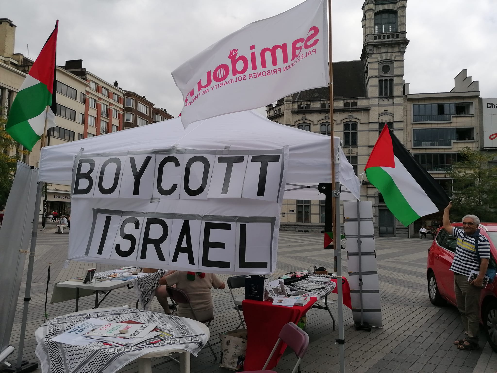 La détention administrative est un enfermement sans inculpation ni procès, qui peut être renouvelé tous les six mois. C’est ce que des membres de la Plate-forme Charleroi-Palestine ont expliqué aux nombreux visiteurs de leur stand. Plusieurs personnes ont affiché leur soutien en nous permettant de les prendre en photo pour publication sur les réseaux sociaux.