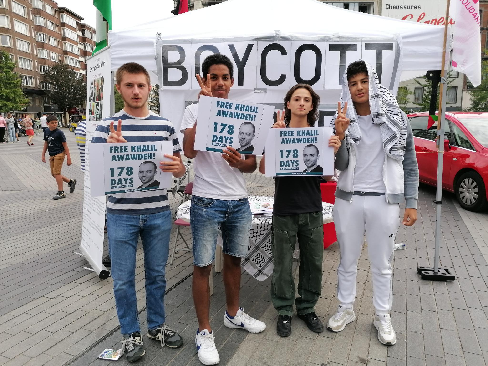 La détention administrative est un enfermement sans inculpation ni procès, qui peut être renouvelé tous les six mois. C’est ce que des membres de la Plate-forme Charleroi-Palestine ont expliqué aux nombreux visiteurs de leur stand. Plusieurs personnes ont affiché leur soutien en nous permettant de les prendre en photo pour publication sur les réseaux sociaux.