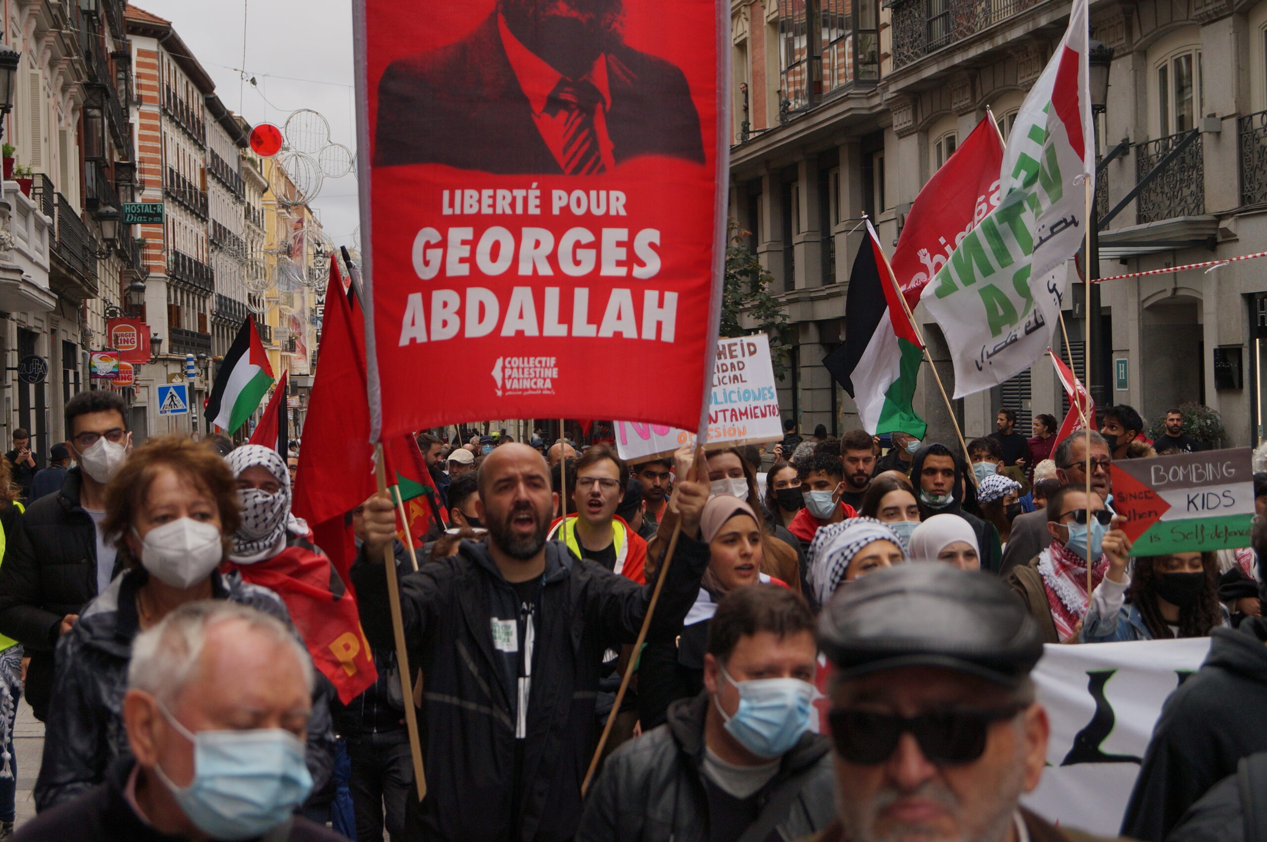 - Liberté pour tou·te·s les prisonnier·e·s palestinien·ne·s, dont le communiste libanais Georges Abdallah emprisonné en France depuis 1984
