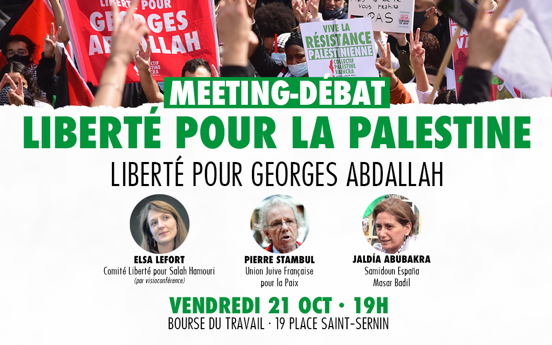Dans le cadre du mois international pour la libération de Georges Abdallah, le Collectif Palestine Vaincra vous invite à un meeting-débat « Liberté pour la Palestine – Liberté pour Georges Abdallah » en présence de :