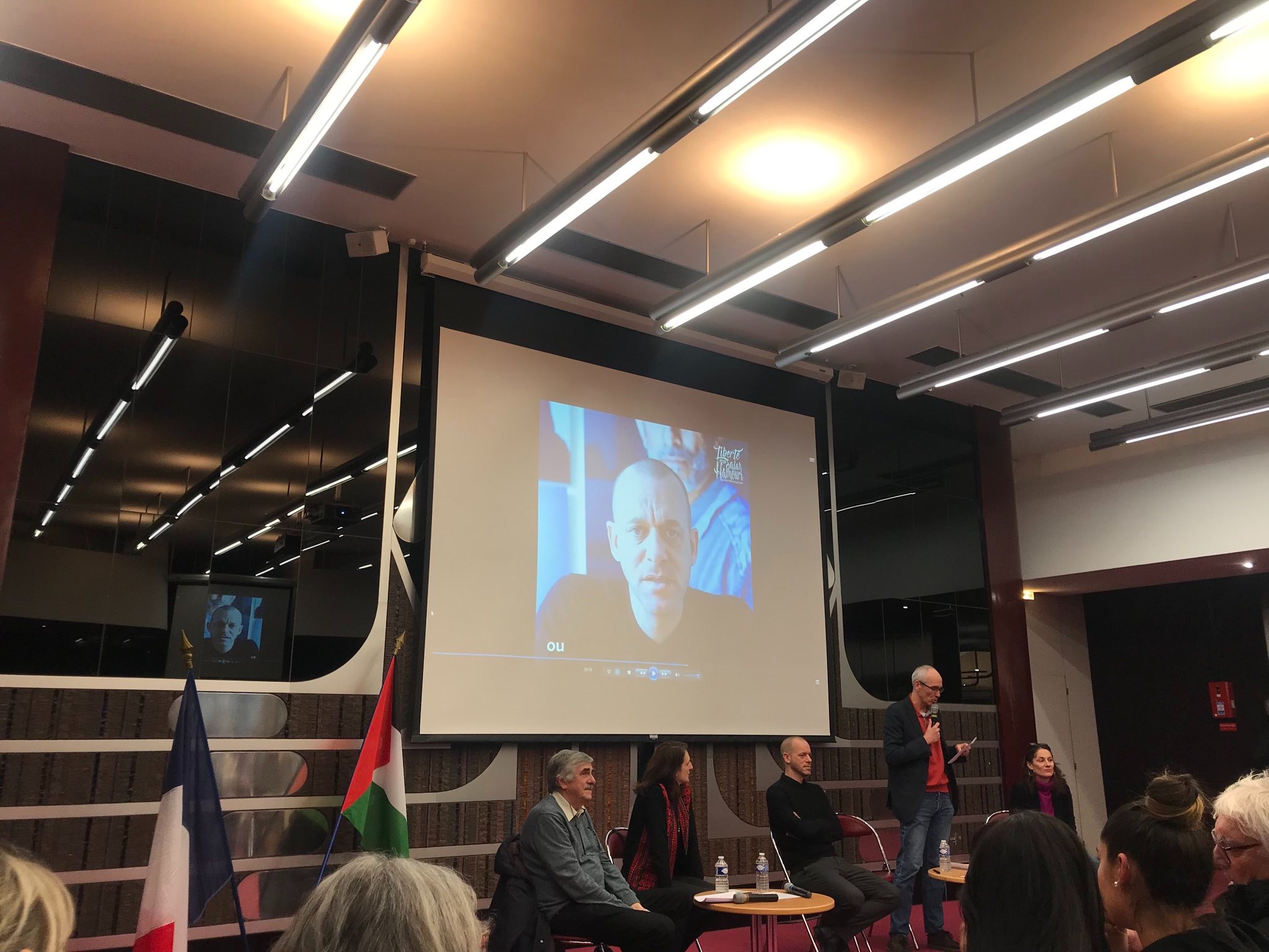 Dans cet imposant hôtel de ville, qui avait réservé un bel auditorium pour l’événement, environ 80 personnes étaient réunies pour l’accueillir chaleureusement et rendre visible le soutien que la ville de Gennevilliers lui a apporté tout au long de ses différentes détentions.