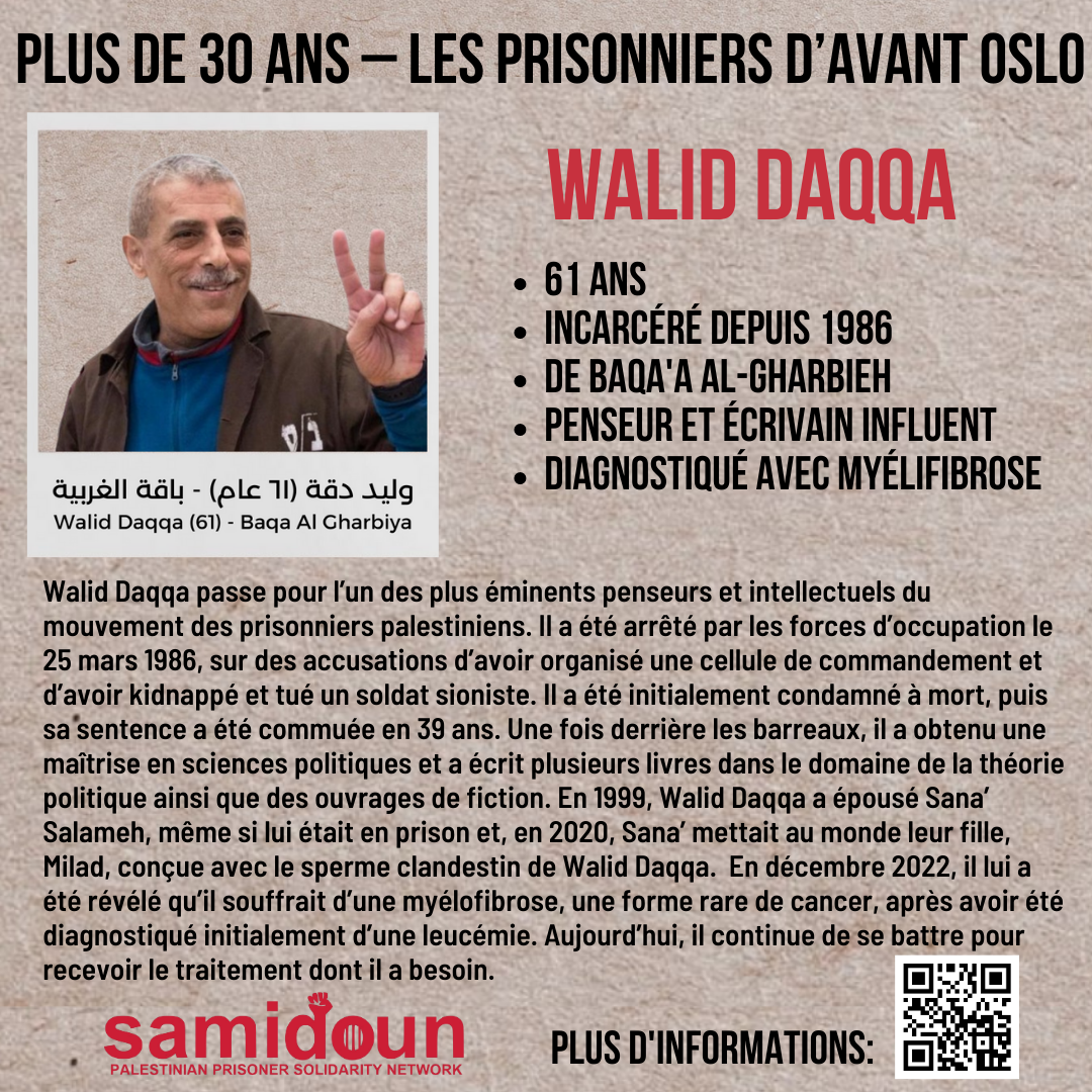 Walid Daqqa (61 ans) – originaire de Baqa’a Al-Gharbiya en Palestine 1948 occupée