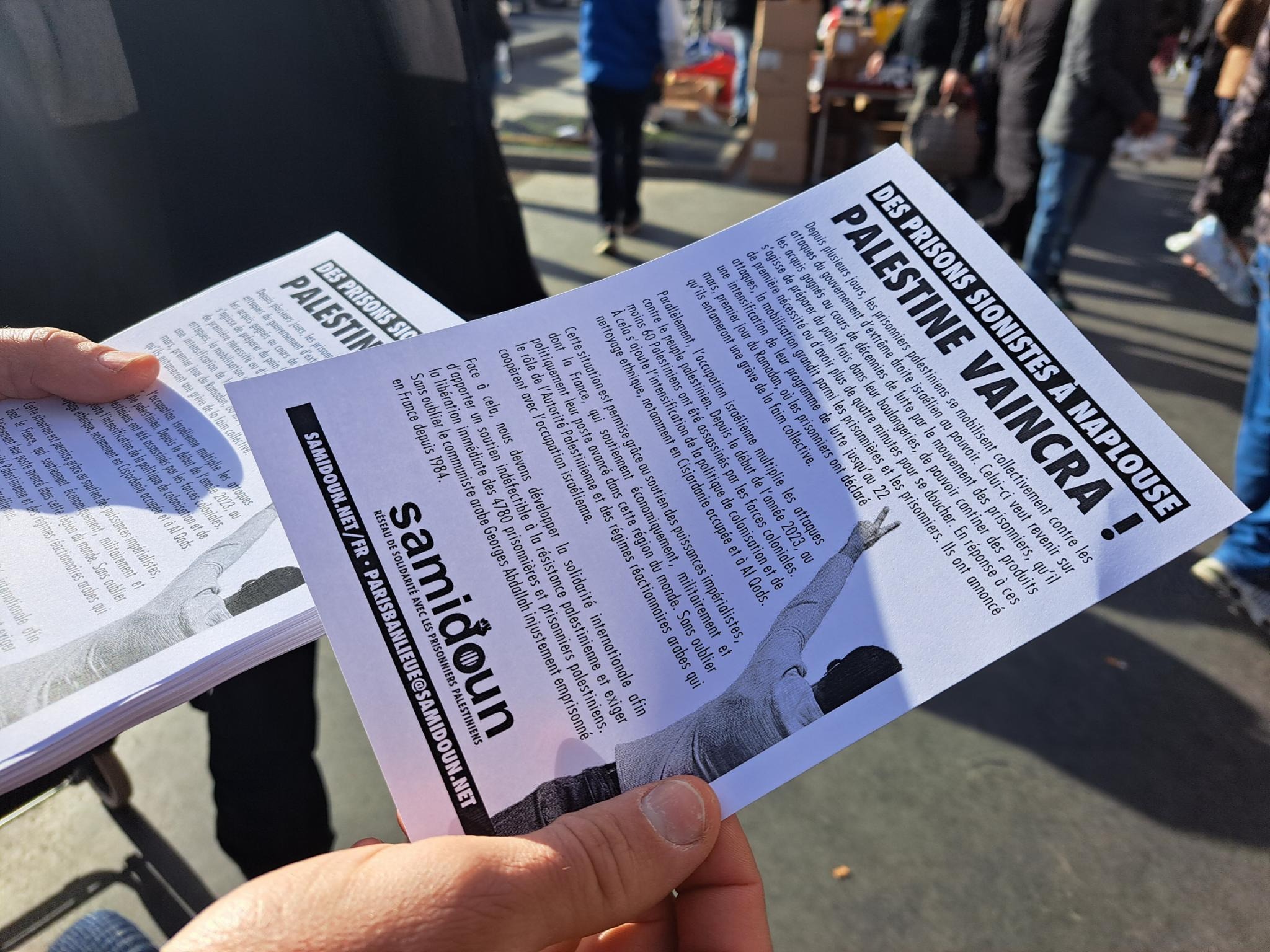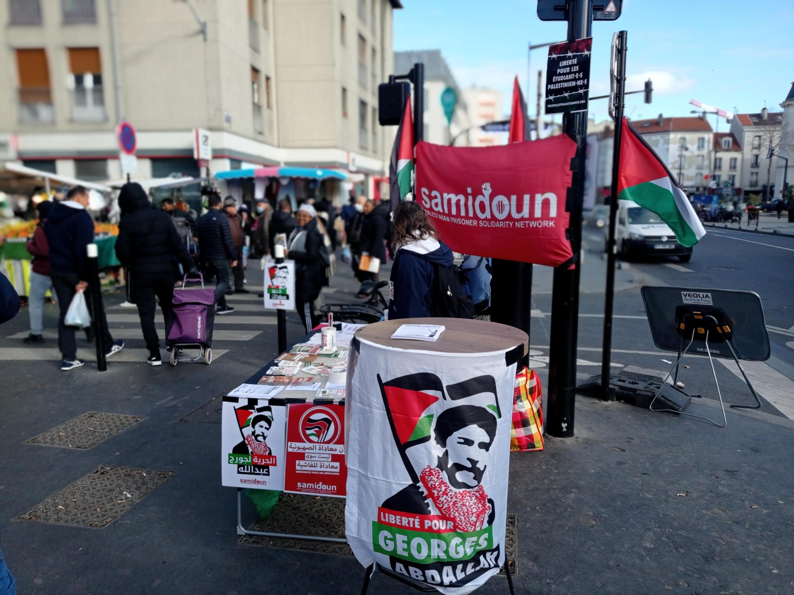 Samedi 26 février, Samidoun Paris Banlieue organisait son stand mensuel au marché d’Aubervilliers, un stand placé sous le signe de la solidarité avec le mouvement des prisonniers palestiniens qui se mobilise dans les geôles de l’occupation israélienne.
