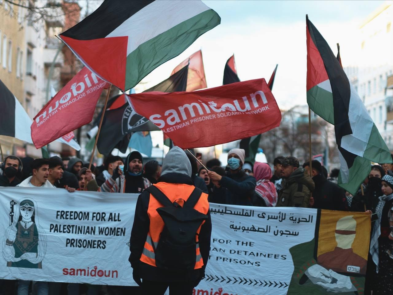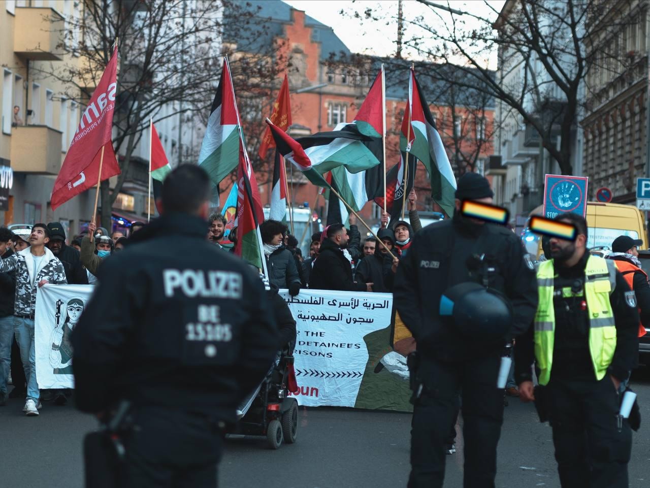 En soutien au mouvement des prisonniers et à la résistance en Palestine, le réseau Samidoun et le Mouvement alternatif de la voie révolutionnaire palestinienne ont organisé une manifestation à Berlin le samedi 4 février 2023 le long de la “Sonnenallee”, ou comme on l’appelle localement “la rue des Arabes”. La manifestation a eu lieu après que les forces d’occupation aient pris d’assaut plusieurs sections de différentes prisons, et transféré de nombreux prisonniers au hasard, empêché les visites, et placé un grand nombre de prisonniers en isolement. Les forces sionistes ont également pris d’assaut les chambres des prisonnières de la “prison de Damon” et les ont agressées à coups de bâton et de gaz lacrymogène. Les prisonniers palestiniens de diverses prisons ont réagi en déclarant un état d’alerte, qui a été suivi de négociations avec l’administration pénitentiaire, au cours desquelles le mouvement des prisonniers a remporté la victoire et l’administration a retiré ses mesures d’escalade.