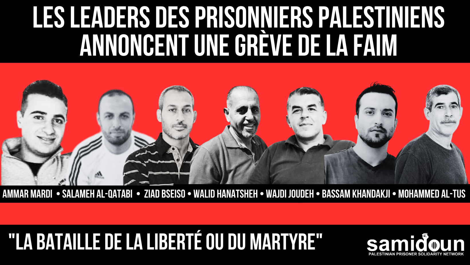 Ces six représentants sont rejoints dans le lancement de la grève par Mohammed al-Tus, le plus ancien prisonnier palestinien incarcéré depuis 1985.