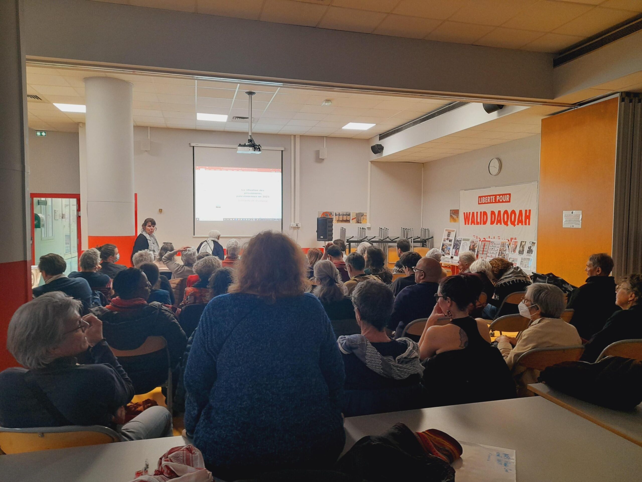 À la suite du film, Samidoun Paris Banlieue a présenté la situation des 29 prisonnières politiques palestiniennes détenues à la prison coloniale de Damon, et nous sommes revenus sur les différentes étapes de leur trajectoire.
