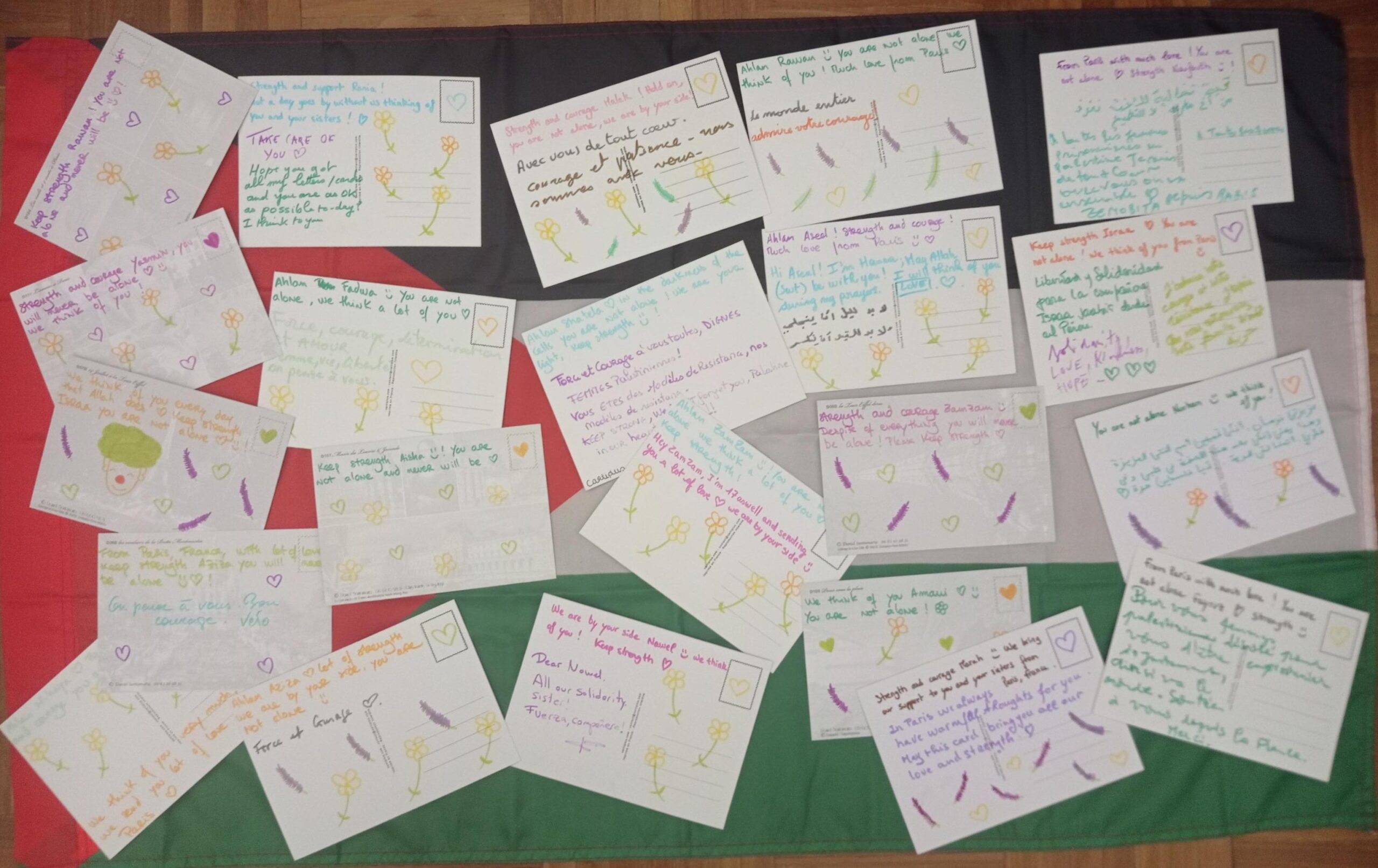Nous tenons à remercier chaleureusement le public qui a fait le déplacement pour assister à cette projection et toutes les personnes qui se sont arrêtées sur notre stand pour écrire quelques mots de soutien ! Merci également aux différentes organisations avec lesquelles l’événement a été organisé, un beau travail collectif qui nous a permis de rendre hommage à ces résistantes du quotidien ! N’oubliez pas de nous suivre sur nos réseaux sociaux pour participer à nos activités et retrouver l’ensemble de nos actions et mobilisations (Instagram, Facebook, Twitter) ou de nous contacter par mail à parisbanlieue@samidoun.net