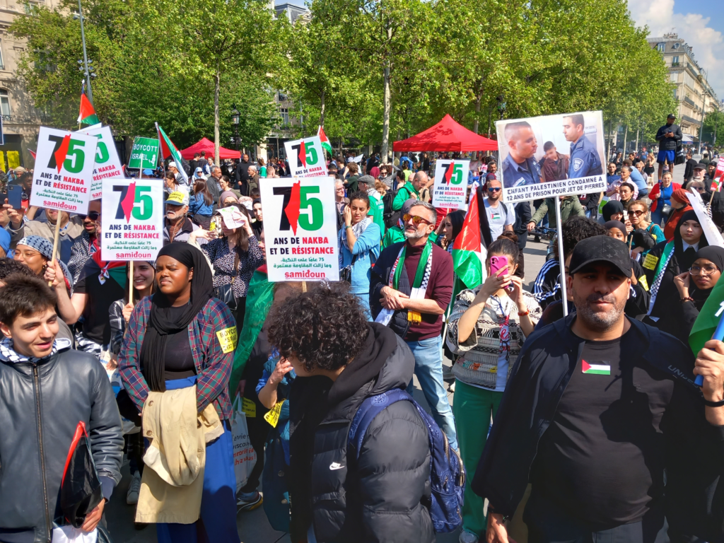Pendant plus d’une semaine, plusieurs événements rassemblant jusqu’à plusieurs milliers de personnes, se sont tenus dans Paris et sa banlieue. Ils s’inscrivaient dans le cadre des commémoration des 75 ans de la Nakba, processus de colonisation et de nettoyage ethnique en Palestine toujours en cours aujourd’hui auquel résiste inlassablement le peuple palestinien.