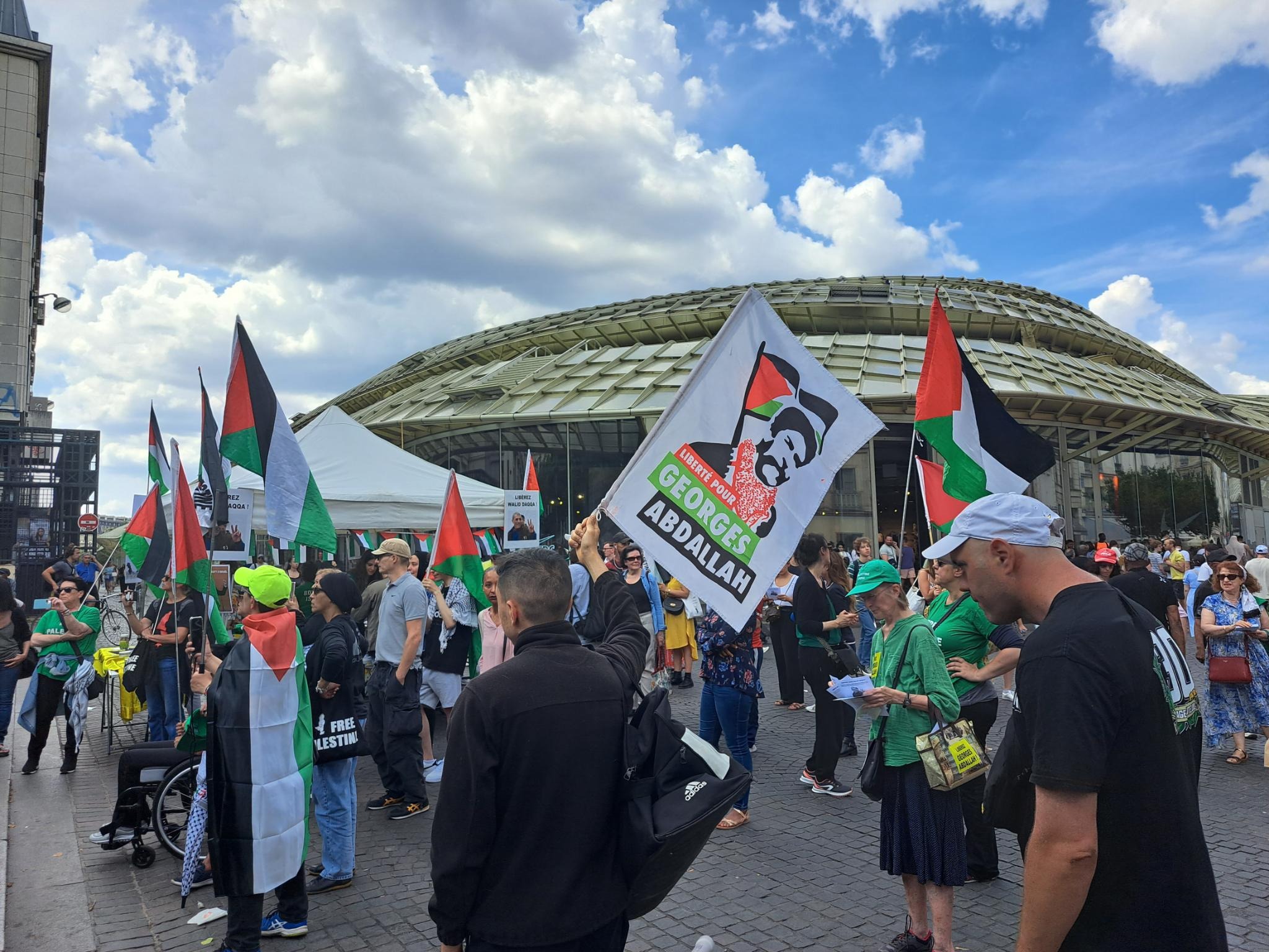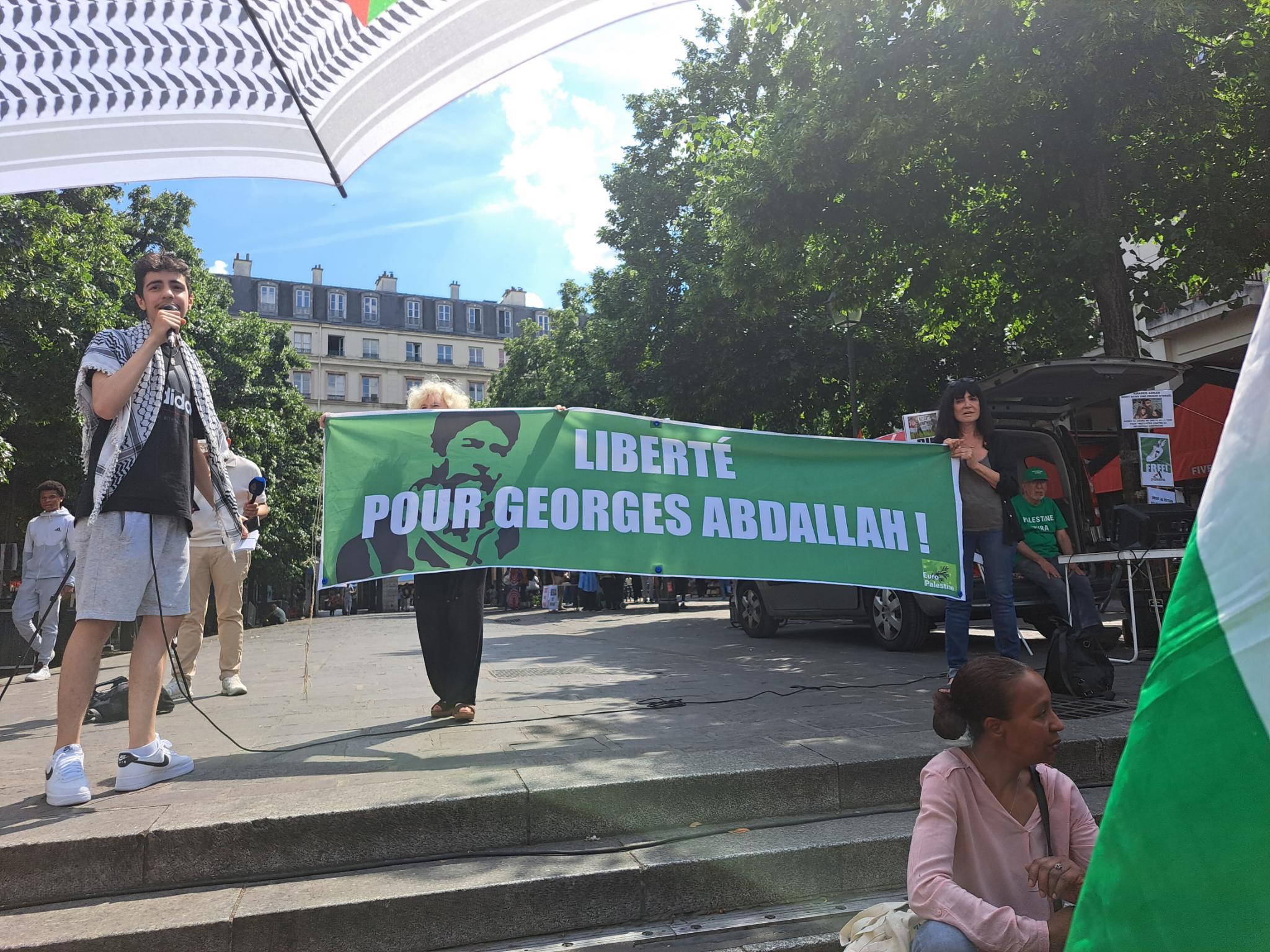 Et donc nous tous qui sommes présents ici on a le devoir d’exiger la libération immédiate des 5000 prisonniers palestiniens détenus par l’occupation israélienne tout comme la libération de Georges Abdallah, qui est enfermé en France depuis 1984 et libérable depuis 1999. On doit exiger sa libération et participer à la manifestation du 18 juin !