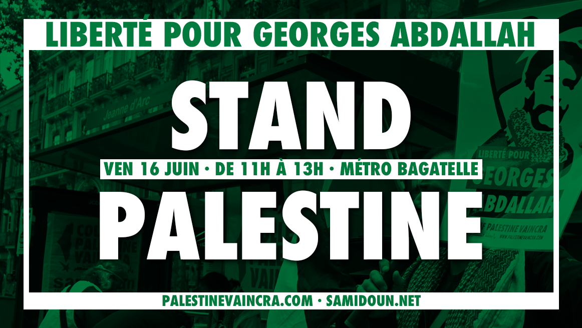 Vendredi 16 juin, Toulouse : Stand Palestine “Liberté pour Georges Abdallah”