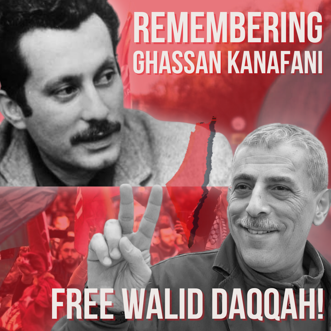 A l’occasion du 51ème anniversaire de l’assassinat de Ghassan Kanafani, il est temps d’agir pour libérer Walid Daqqah et stopper le dernier assaut du régime d’occupation. Kanafani, un internationaliste convaincu, a appeler tout le monde à affronter l’impérialisme partout, comme le font les militants de Palestine Action en Grande-Bretagne, qui luttent contre l’emprisonnement pour démanteler la machine de guerre sioniste, une bataille soutenue par le mouvement des prisonniers palestiniens. Les puissances impérialistes sont partenaires des crimes commis contre Walid Daqqah, contre tous les prisonniers palestiniens et contre le peuple palestinien dans son ensemble – c’est pourquoi les actions menées partout sont d’une importance cruciale. Le réseau de solidarité avec les prisonniers palestiniens Samidoun demande instamment à tous de se joindre aux événements organisés par le Mouvement de la jeunesse palestinienne du 7 au 15 juillet, et développer la lutte pour libérer Walid Daqqah – pour honorer Ghassan Kanafani, et pour empêcher l’assassinat d’un autre révolutionnaire palestinien dans la ligne de mire de l’occupant.