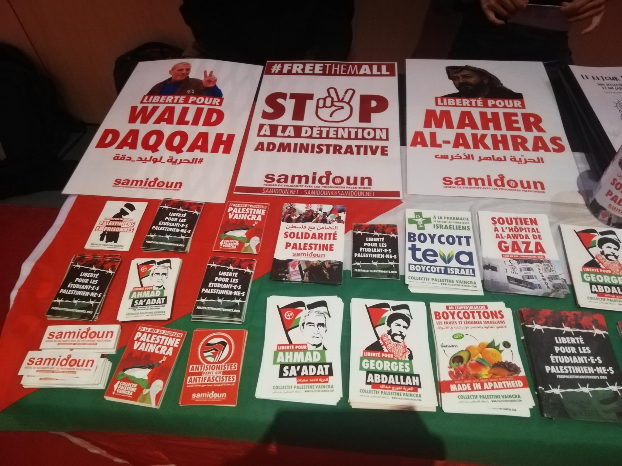 Parallèlement à ces différentes campagnes, nous avons aussi informé les visiteurs du stand sur la grève de la faim lancée par plusieurs détenus, dont un certain nombre en détention administrative, et notamment le cas du leader palestinien Maher Al Akhras. Lors de sa dernière détention, ce dernier avait arraché sa libération à la suite d’une grève de la faim de 103 jours et avait été soutenu dans le monde entier.