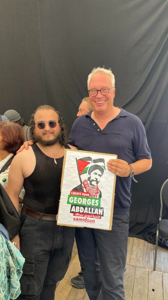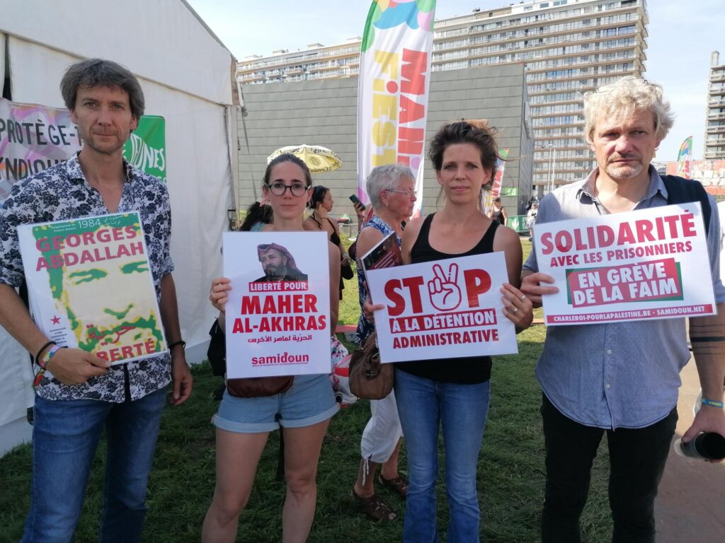 Déambulant dans les allées de la fête, les militants ont sensibilisé sur la cause et l’histoire de Georges Abdallah et invité les personnes intéressées à s’engager pour sa libération, notamment en participant à la marche du 21 octobre prochain devant la prison où il est détenu à Lannemezan en France aux côtés de Masar Badil, du Collectif Palestine Vaincra et de nombreuses organisations. Une délégation de Belgique s’organise, n’hésitez pas à nous contacter par mail pour y participer : brussels@samidoun.net