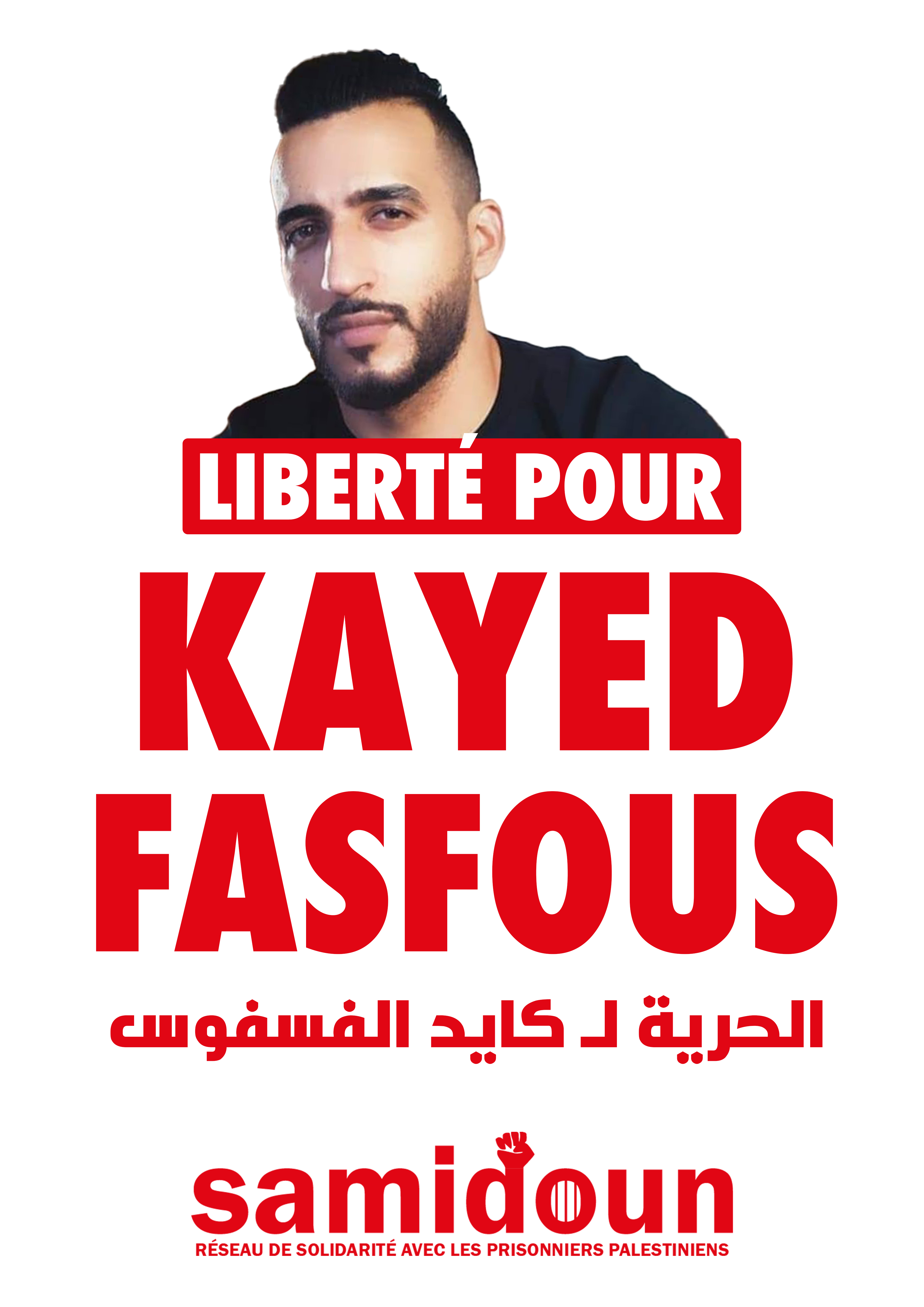 Le réseau de solidarité avec les prisonniers palestiniens Samidoun exhorte tous les partisans de la Palestine à agir pour soutenir Kayed Fasfous et tous les prisonniers palestiniens qui luttent pour la liberté, pour leur propre vie et pour le peuple palestinien. Ces fils des masses populaires palestiniennes affrontent le système d’oppression israélien en première ligne, derrière les barreaux, avec leur corps et leur vie, pour mettre fin au système de détention administrative.