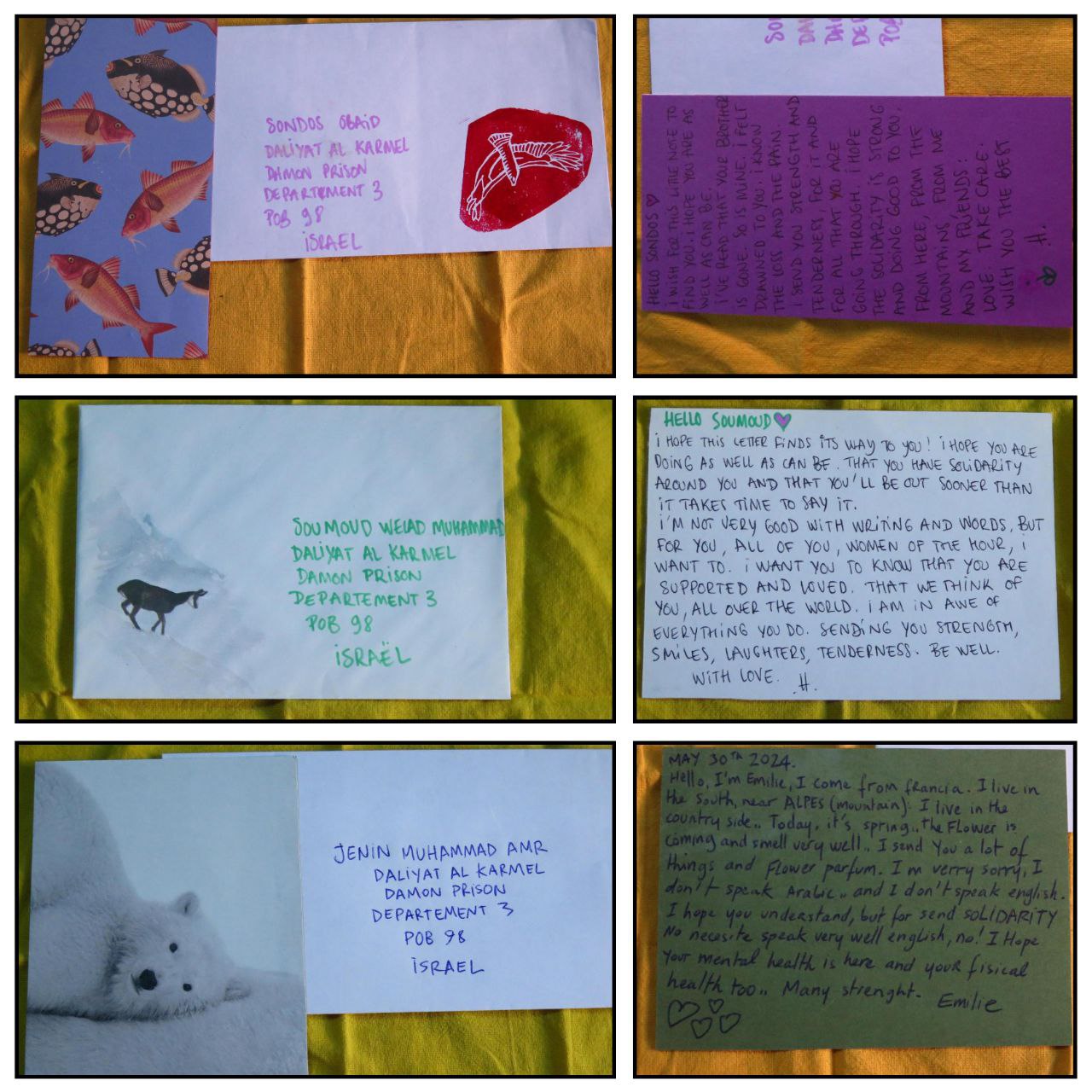 Ce mois ci plus de 120 cartes postales et lettres partiront de l’Ile de France vers la prison coloniale de Damon, où sont enfermées les plus de 80 prisonnières palestiniennes