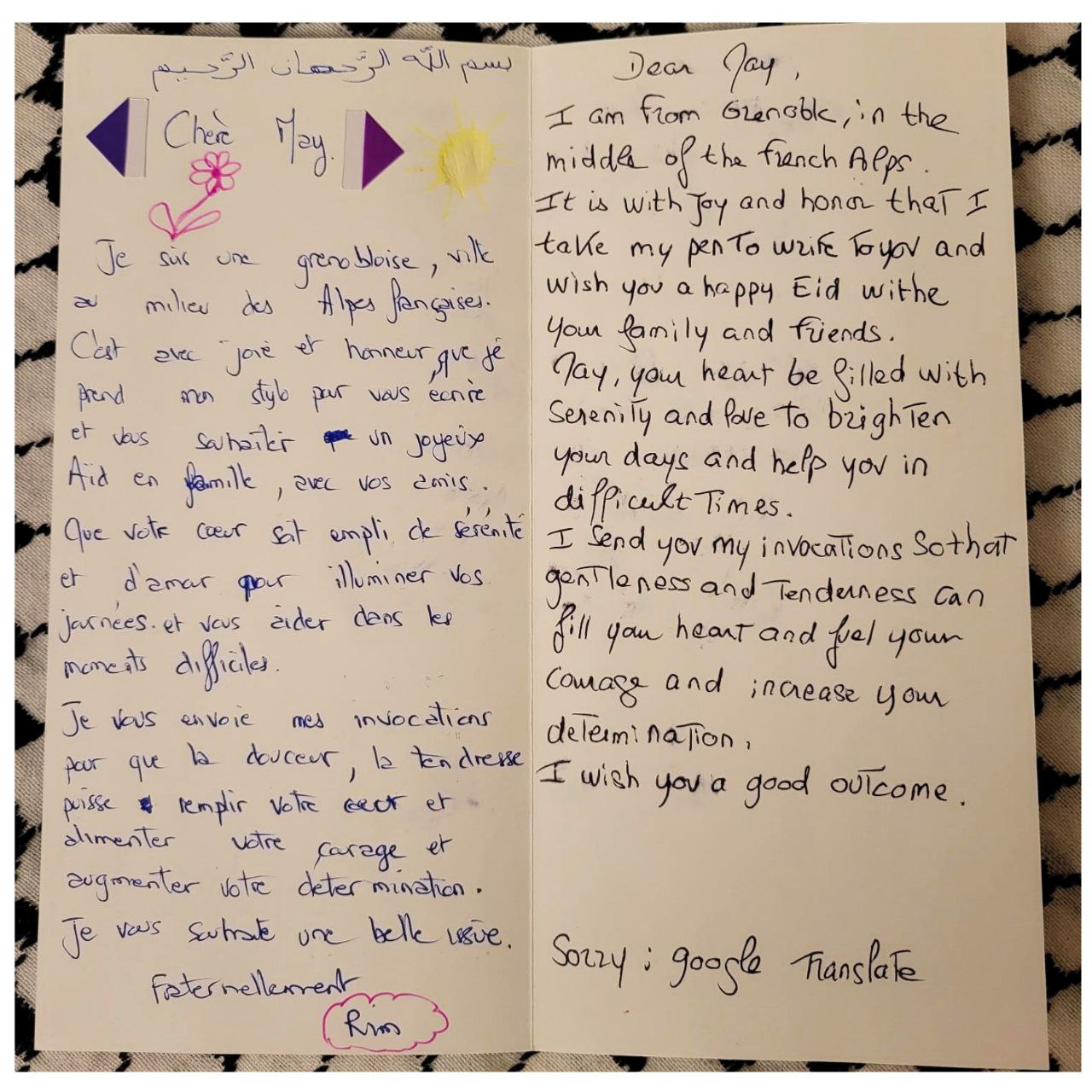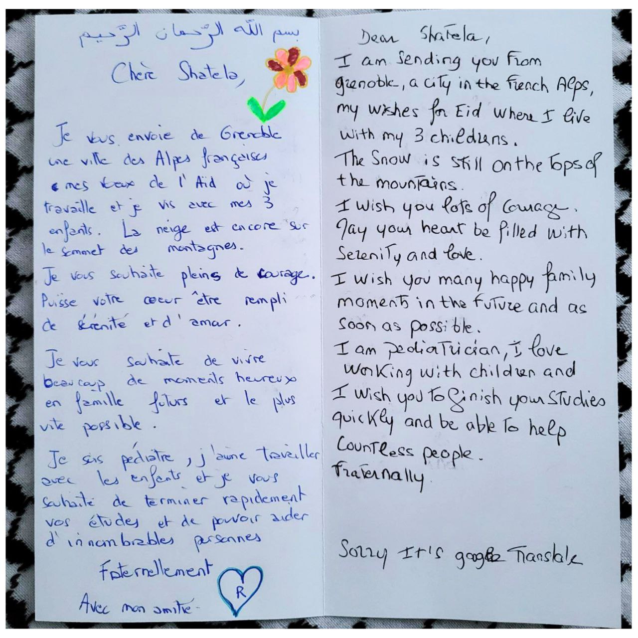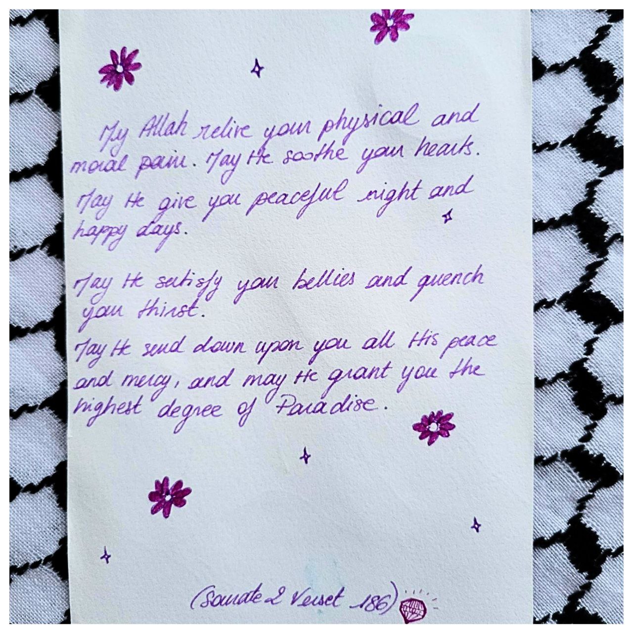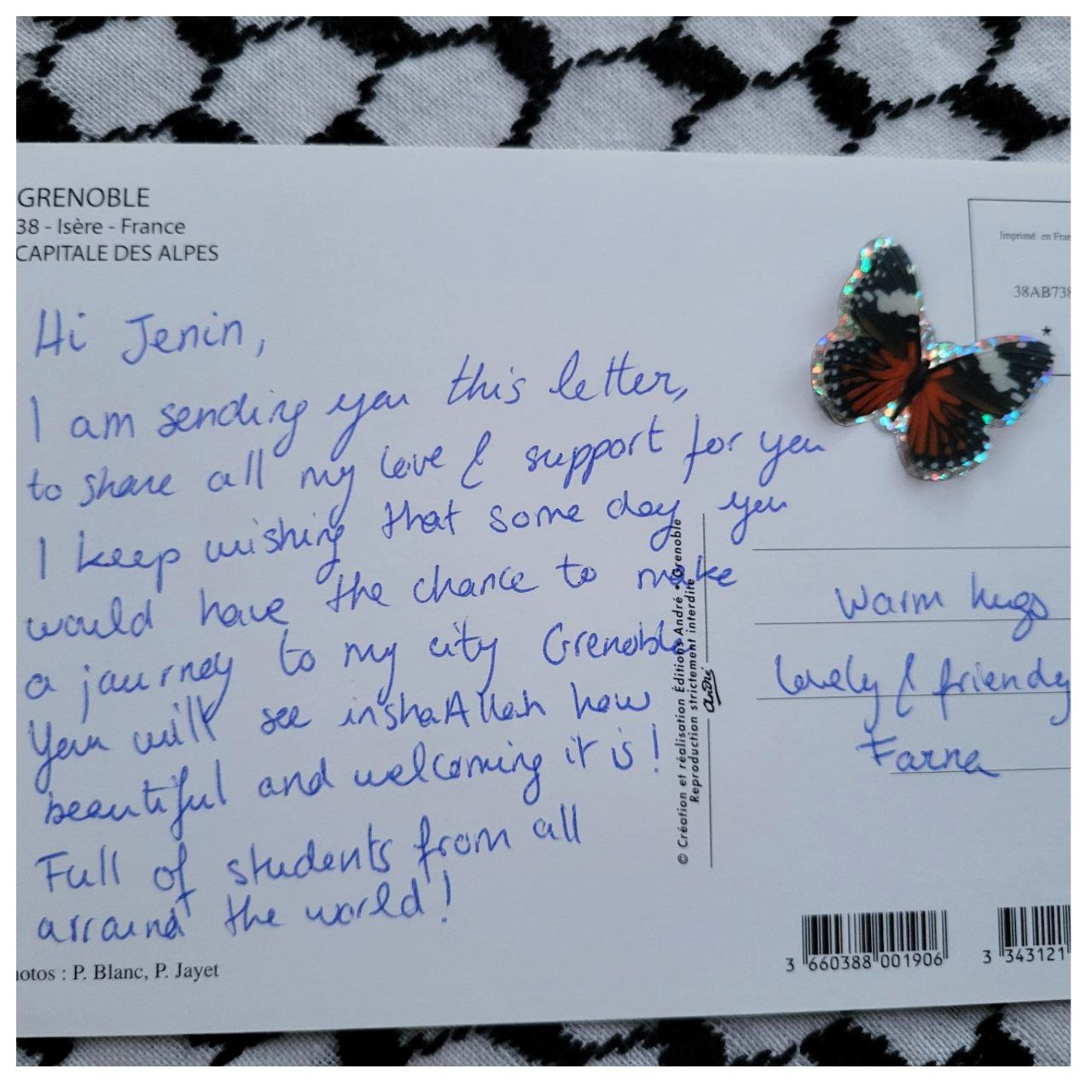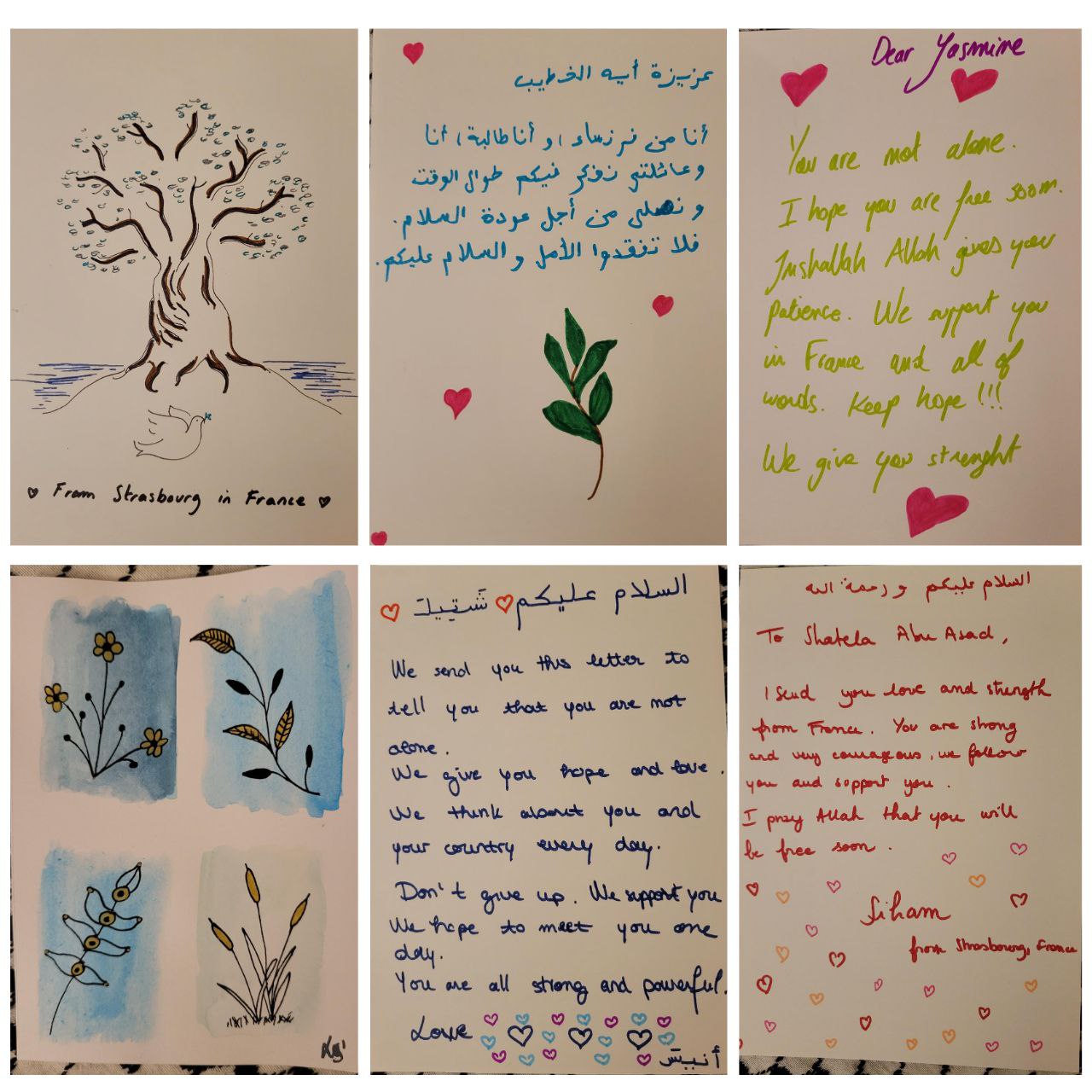 Ces correspondances, sur du long terme, permettent de briser l’isolement que tente d’imposer l’État colonial aux prisonnier·es Palestiniennes. En leur écrivant massivement, depuis différentes villes d’Hexagone nous leur montrons que dans le monde entier, des gens soutiennent la lutte du peuple palestinien contre le colonialisme, soutiennent la résistance palestinienne et les prisonnier·es. Les preuves de solidarité concrètes comme celles ci sont précieuses et permettent d’illuminer le quotidien des prisonnier·es.