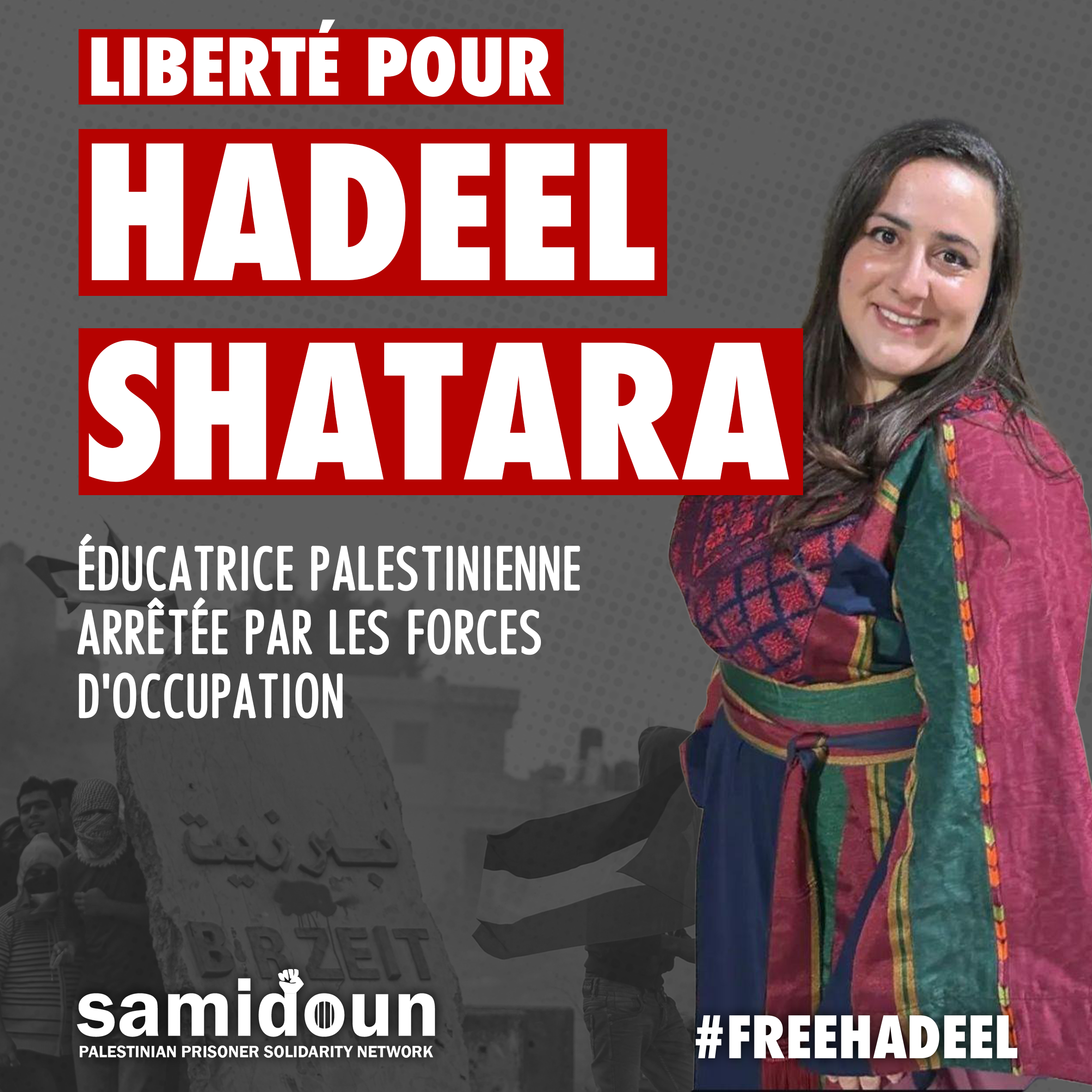 Liberté pour Hadeel Shatara et tous les prisonniers palestiniens !