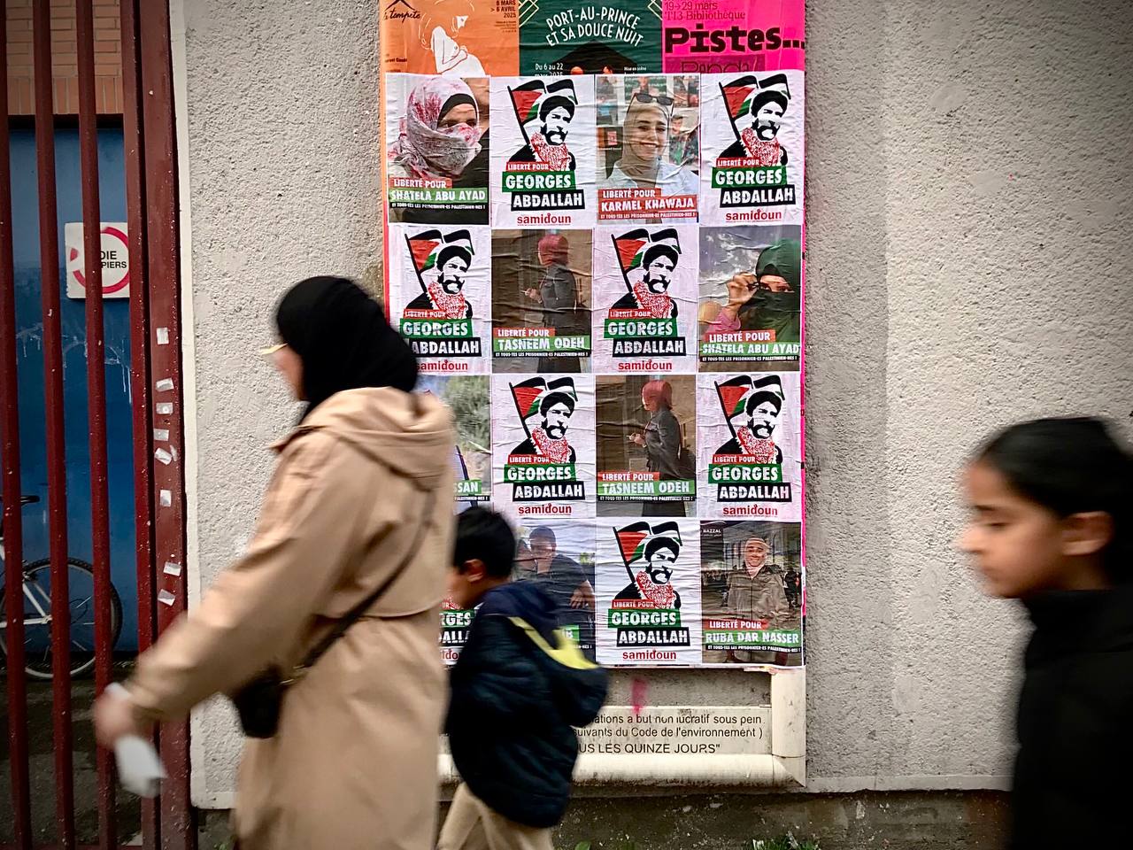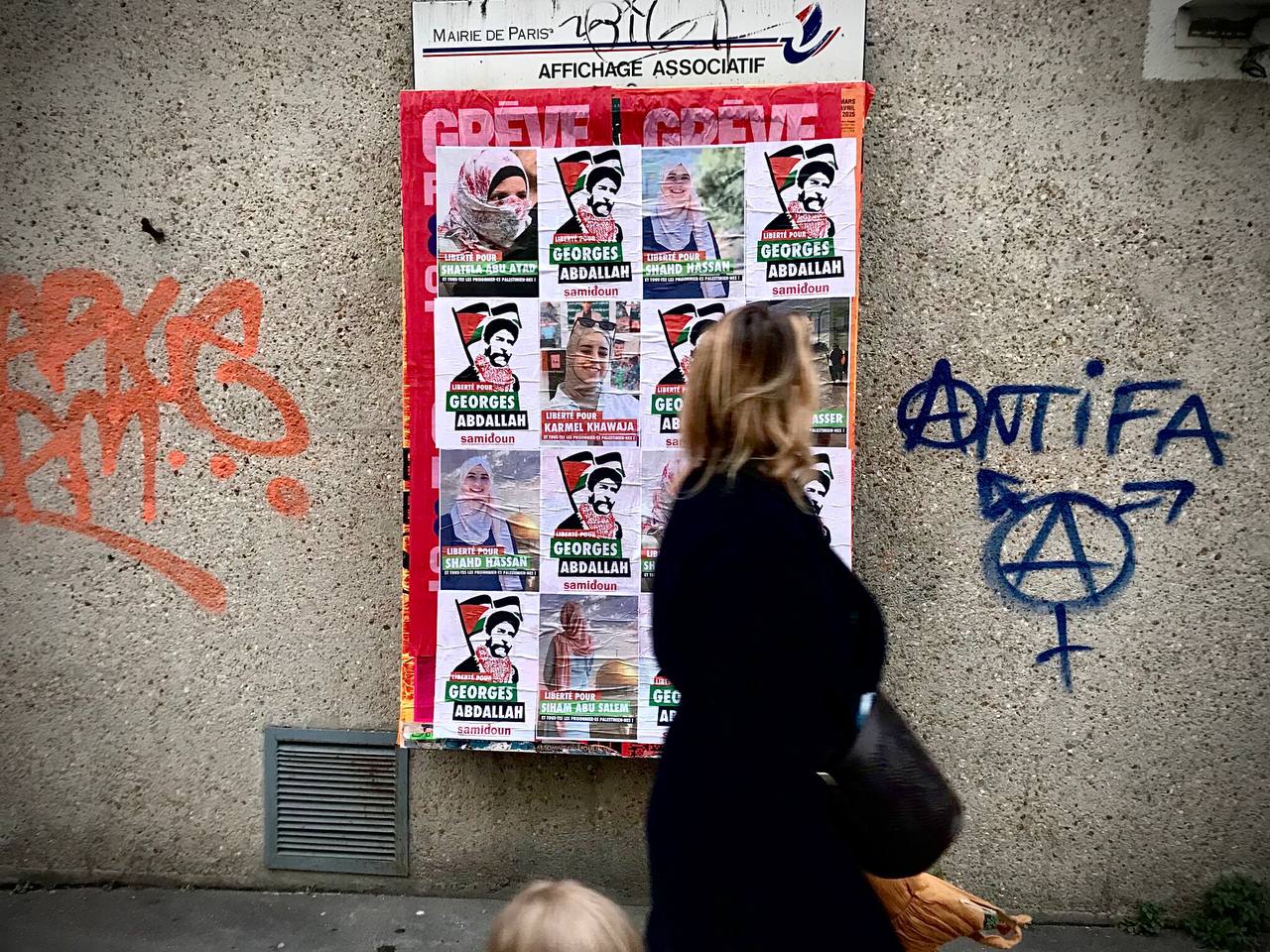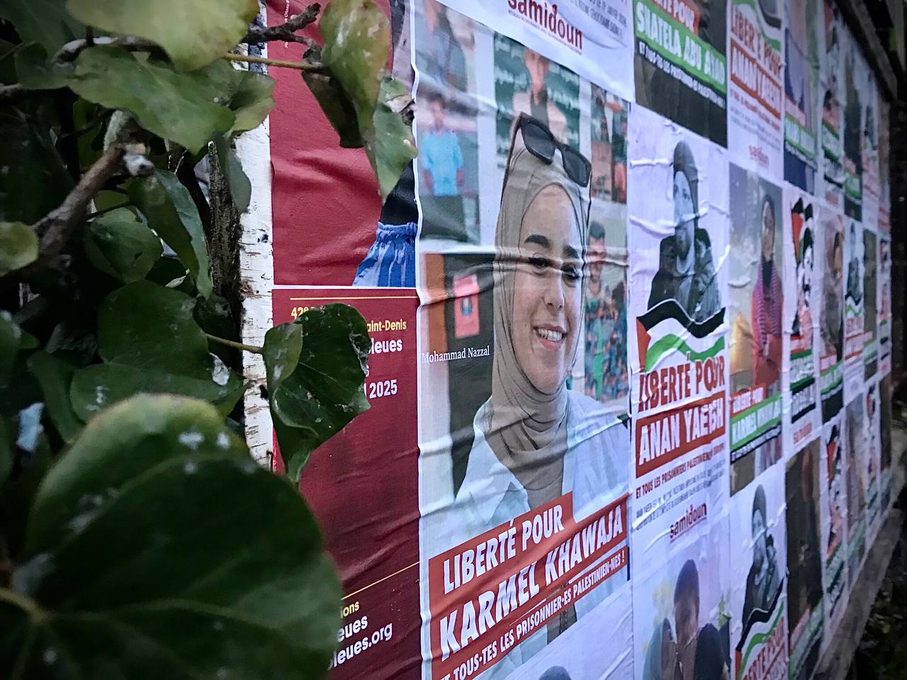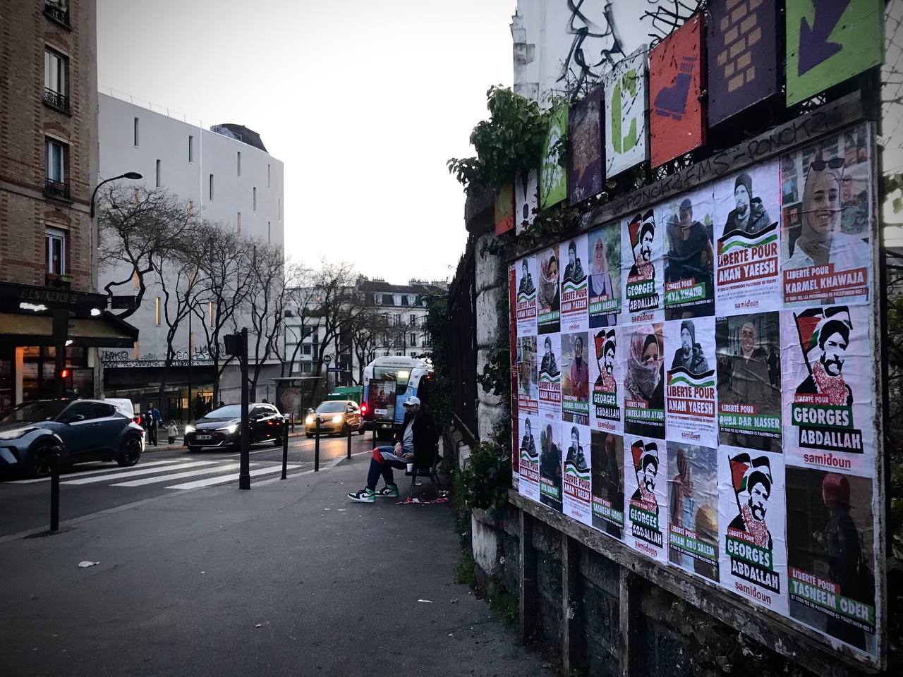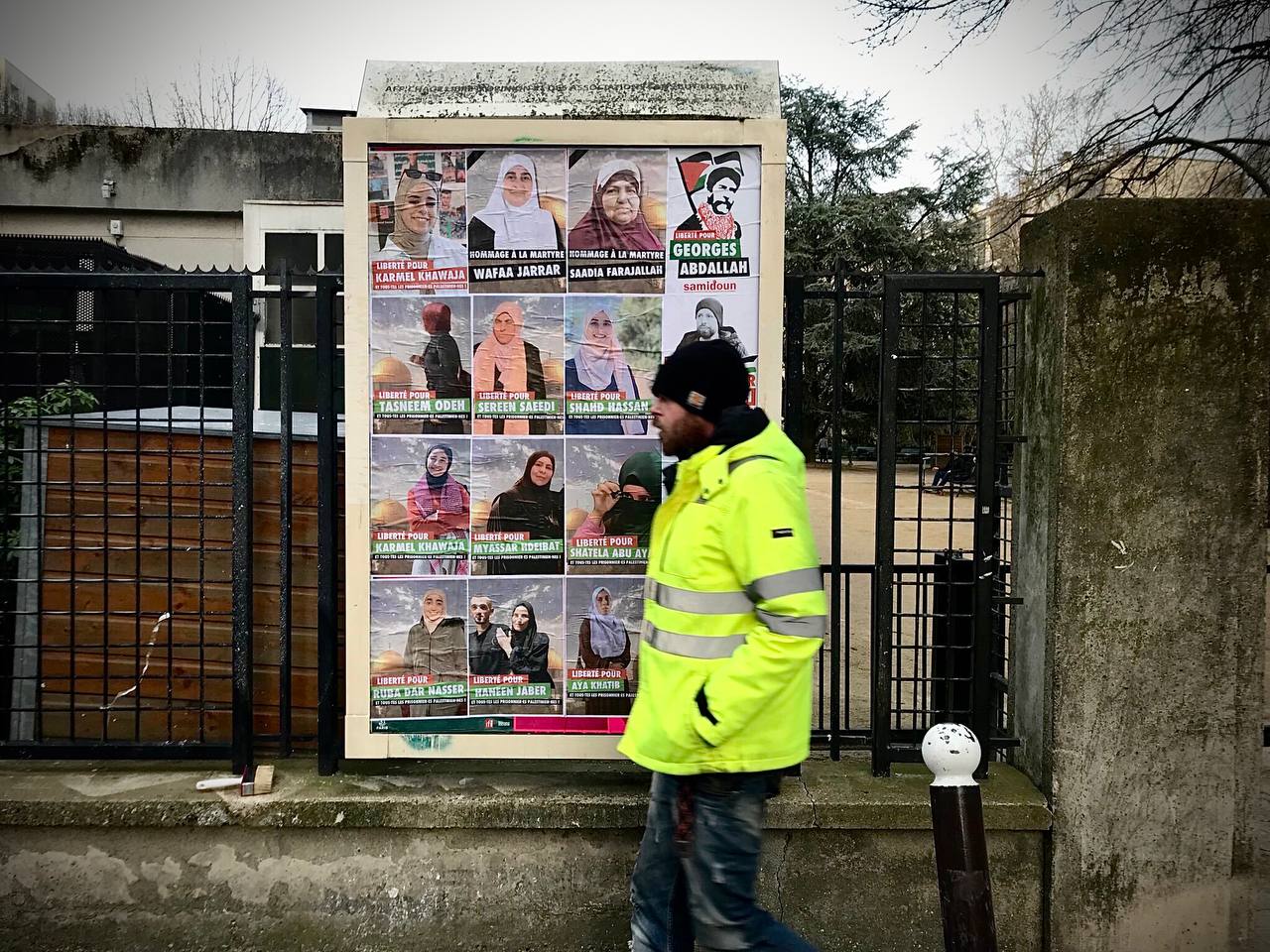 Aujourd’hui, nouveau collage dans les rues du 20e arrondissement de Paris, en solidarité avec les prisonnières palestiniennes, Anan Yaeesh et Georges Abdallah !