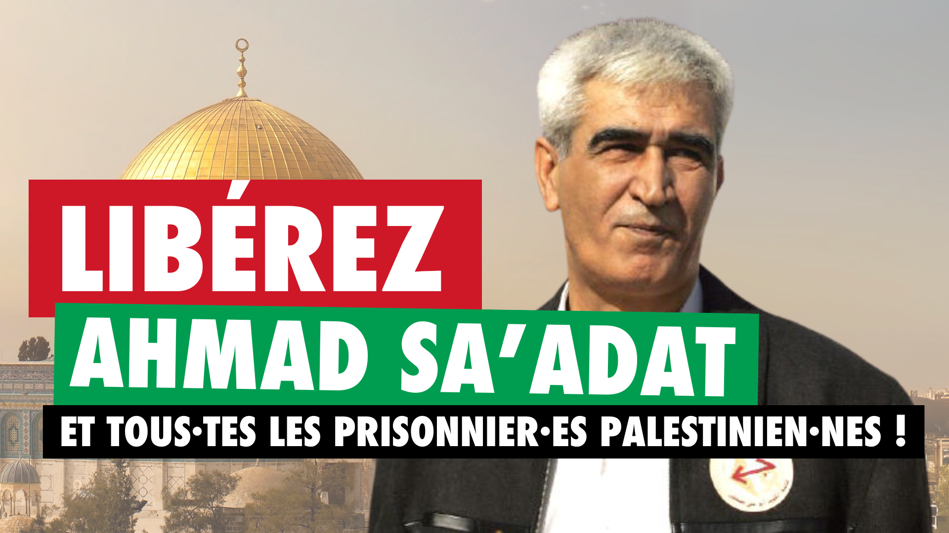 Ahmad Sa’adat est le secrétaire général emprisonné du Front populaire pour la libération de la Palestine. Il est l’un des plus de 10 000 prisonniers politiques palestiniens et il a été condamné à 30 ans d’emprisonnement dans les prisons sionistes pour une série de délits politiques « relatifs à la sécurité ». Parmi ces charges figurent l’affiliation à une organisation interdite (le FPLP, dont il est le secrétaire général), le fait d’occuper un poste au sein d’une organisation interdite et l’incitation en raison d’un discours tenu par Sa’adat même suite à l’assassinat par Israël de son prédécesseur Abu Ali Mustafa, en août 2001, discours dans lequel il avait déclaré « œil pour œil, dent pour dent ». Le 17 octobre 2001, à l’hôtel Hyatt de Jérusalem, en guise de représailles pour l’assassinat d’Abu Ali Mustafa, des combattants de l’aile armée du FPLP assassinaient Rehavam Ze’evi, le tristement célèbre ministre du Tourisme, raciste et d’extrême droite, du gouvernement israélien d’Ariel Sharon.
